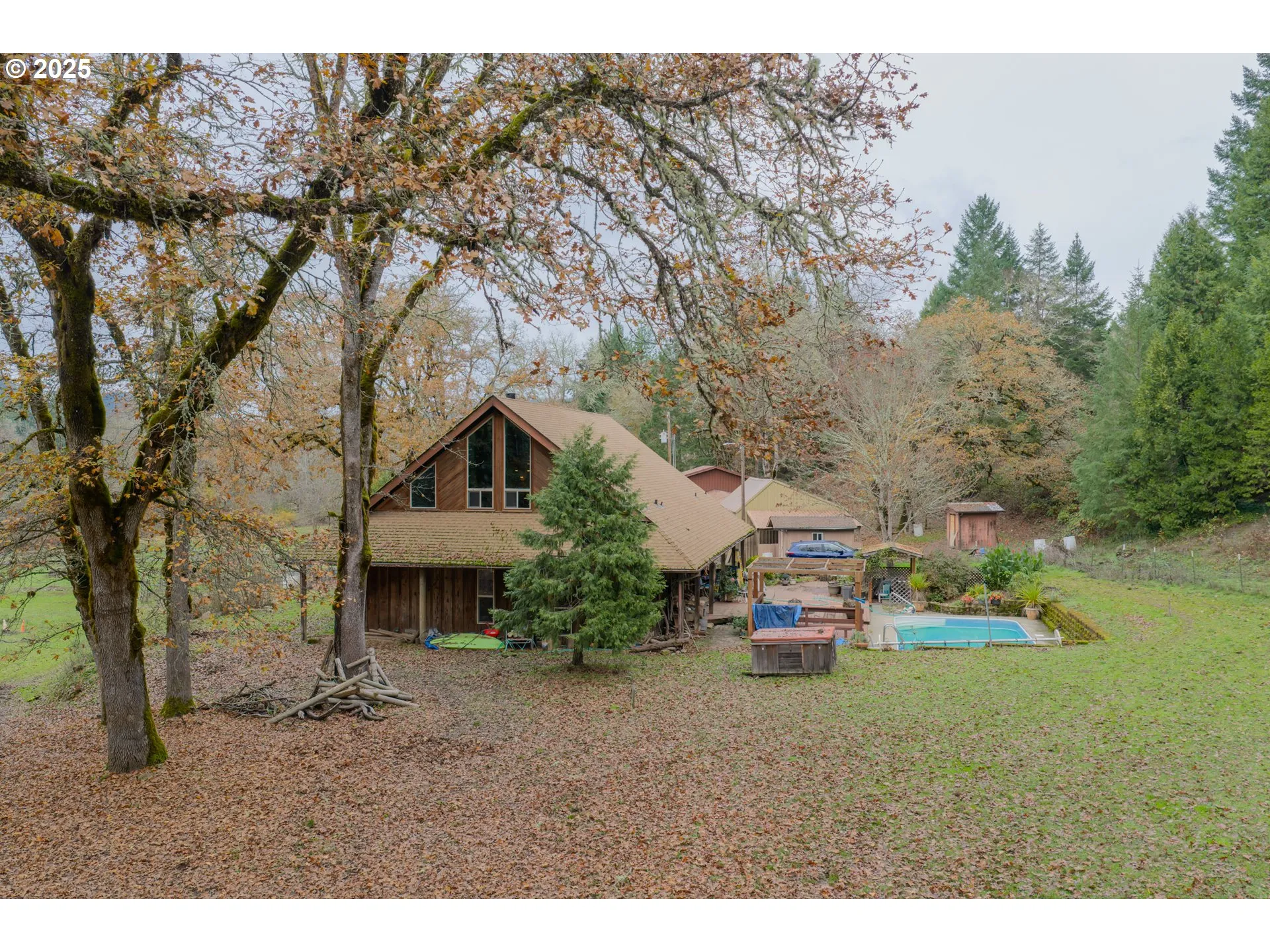 Country Setting 29.80 Acres, A-frame Cedar Home With Vaulted Ceilings. Master On Main Level, Large Loft With A Bedroom And Bath, And An Office. Living Room Has A Fireplace With Woodstove Insert And Massive Natural Stone Chimney. Good Size Kitchen, Laundry Room With Extra Sink. Merchantable Timber, Access To Seneca Timber And Blm Land For Horseback Riding, Mushroom Hunting, Atv’s And Hiking. Beautiful Mountain Views, Year-round Olalla Creek With Water Right Irrigation System. In-ground Swimming Pool. Large Deck. 3 Stall Horse Barn W/ Tack Room. State Of Art New Water Filtration System And Water Softener. Detached 2 Car Garare, 2 Carports, Rv Parking. Ac And Heat. Water Rightsof Year Around Creek. Large Deck,underground Outdoor Swimming Pool. Beautiful Views. Great Horse Property, Near Large Timberland And Blm.