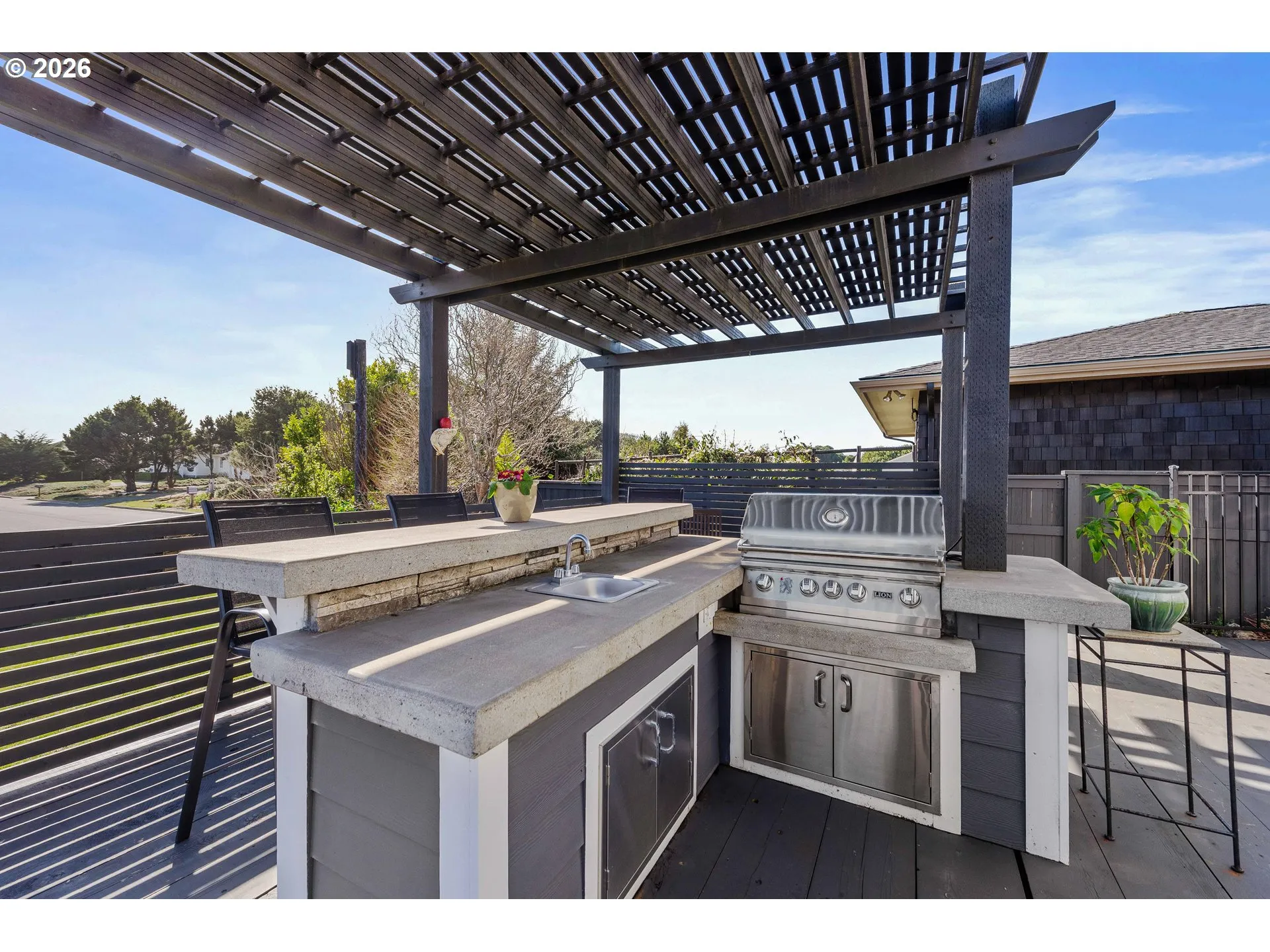 Upscale Landscaping Frames This Beautifully Maintained 2,080-sq-ft Coastal Retreat, Filled With Custom Features And Abundant Natural Light Throughout. Enjoy An Easy Stroll To The Beach And A Short Drive To World-famous Bandon Dunes Golf Resort, Along With Restaurants, Shopping, And Old Town Bandon.this Inviting Home Offers 4 Bedrooms, 2 Baths, Plus A Versatile Bonus Room Ideal For A Library, Office, Creative Studio, Or Tranquil Sanctuary. The Attached Two-car Garage Includes A Built-in Workbench And Hanging Bike Racks For Added Convenience.designed For Both Relaxation And Entertaining, The Fully Fenced Backyard Is A True Outdoor Oasis. Host Gatherings On The Two-level Deck And Patio Featuring A Fire-pit, Built-in Lion 32″ Bbq, Sink With Dedicated Hot Water Heater, And A Concrete Bar Beneath A Pergola, Perfect For Coastal Evening Of Entertaining.inside, The Open-concept Living Area Showcases Vaulted Ceilings, A Cozy Electric Fireplace, And Elegant Shuttered Windows, Seamlessly Flowing Into The Spacious Kitchen And Dining Room. The Gourmet Kitchen Is Centered Around An Oversized Granite Island With Seating And Is Equipped With Premium Monogram Stainless Steel Appliances, An Induction Cook Top, And Granite Countertops And Backsplash. Sliding Glass Door Provides An Effortless Indoor-outdoor Living, While The Laundry Room—complete With Electrolux Washer And Dryer, Offers Additional Storage Just Off The Dining Room.the Primary Suite Is A Private Haven, Featuring A Newly Remodeled Walk-in Closet And Sliding Glass Doors That Open To A Secluded Deck And Patio. The Luxurious En-suite Bathroom Includes A Large Walk-in Shower And A Deep Soaking Tub For Ultimate Relaxation And Double Sinks.meticulously Cared For And Thoughtfully Designed, This Stunning Coastal Home Is Truly A Must-see. Schedule Your Showing Today!