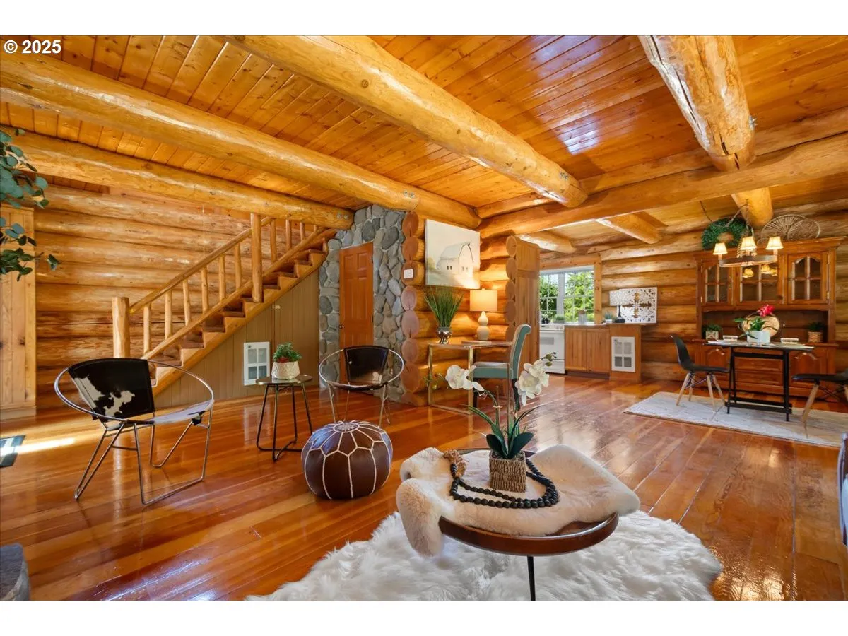 Welcome To Your Peaceful Escape On Shy 10 Acres. This Cozy Log Home Is Charming Tucked Away In A Quiet, Private Secluded Setting. Inviting Country Covered Porch Perfect For Rocking Chairs, Morning Coffee Soaking In The Serene Views.log Interior With A Beautiful Fireplace. Dining Space, Two Bedrooms Up. Big Detached Three Car Oversized Garage With Large Bonus/poss Adu Above. Rv Parking, Manicured Lawns. A Rare Find With Room To Roam In This Rural Country Gem!