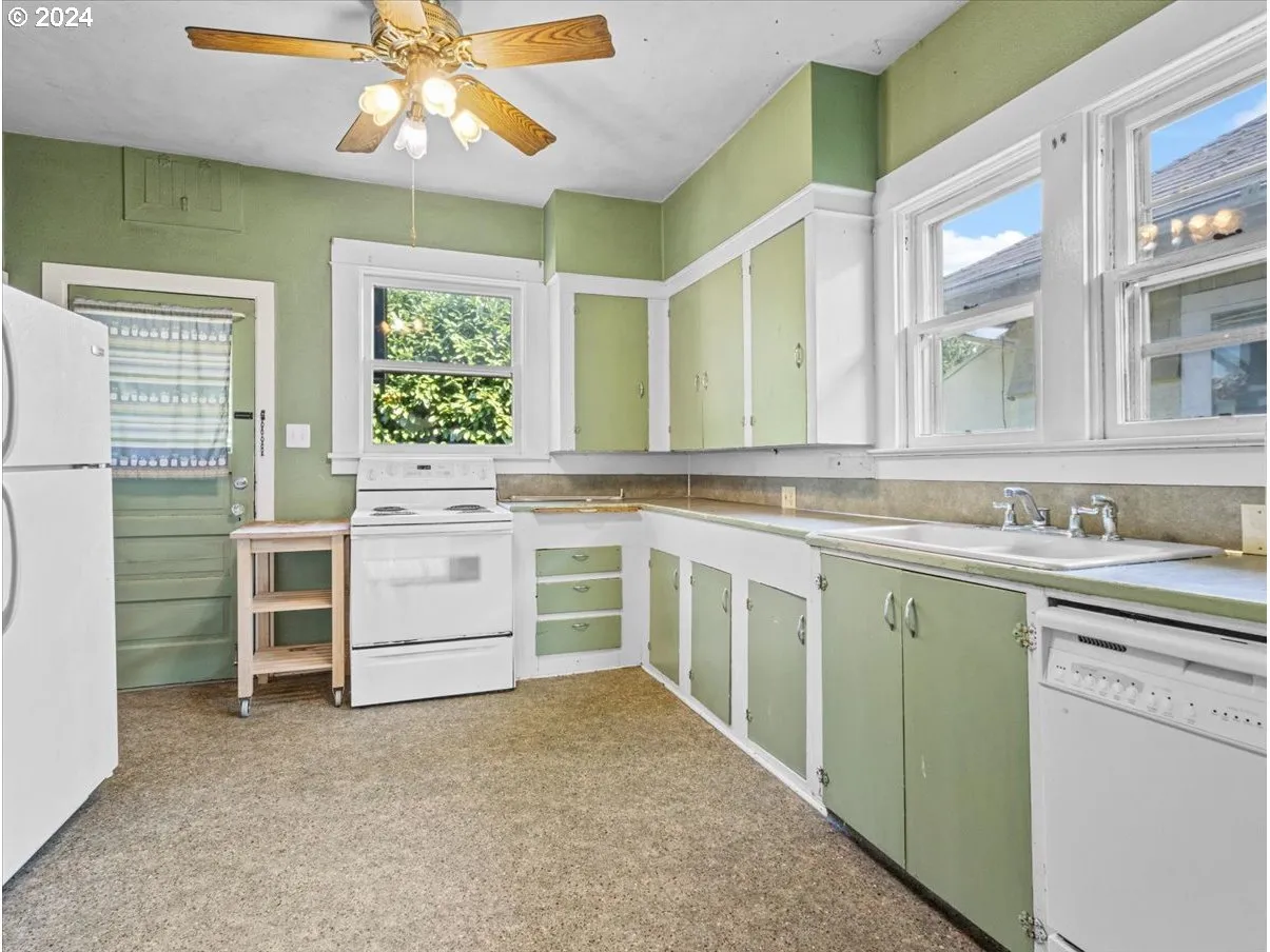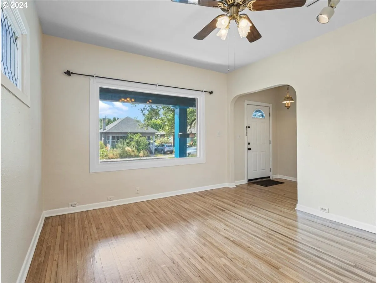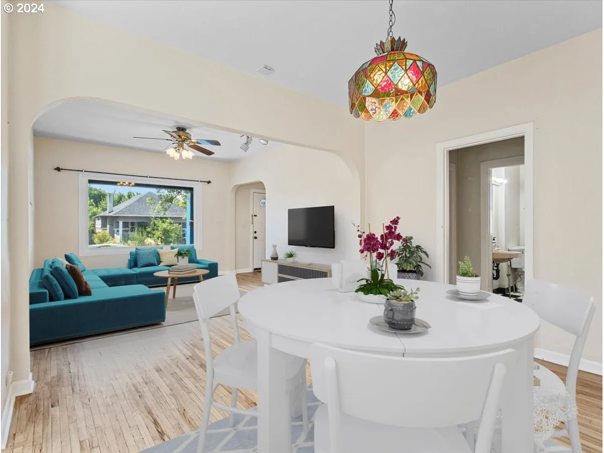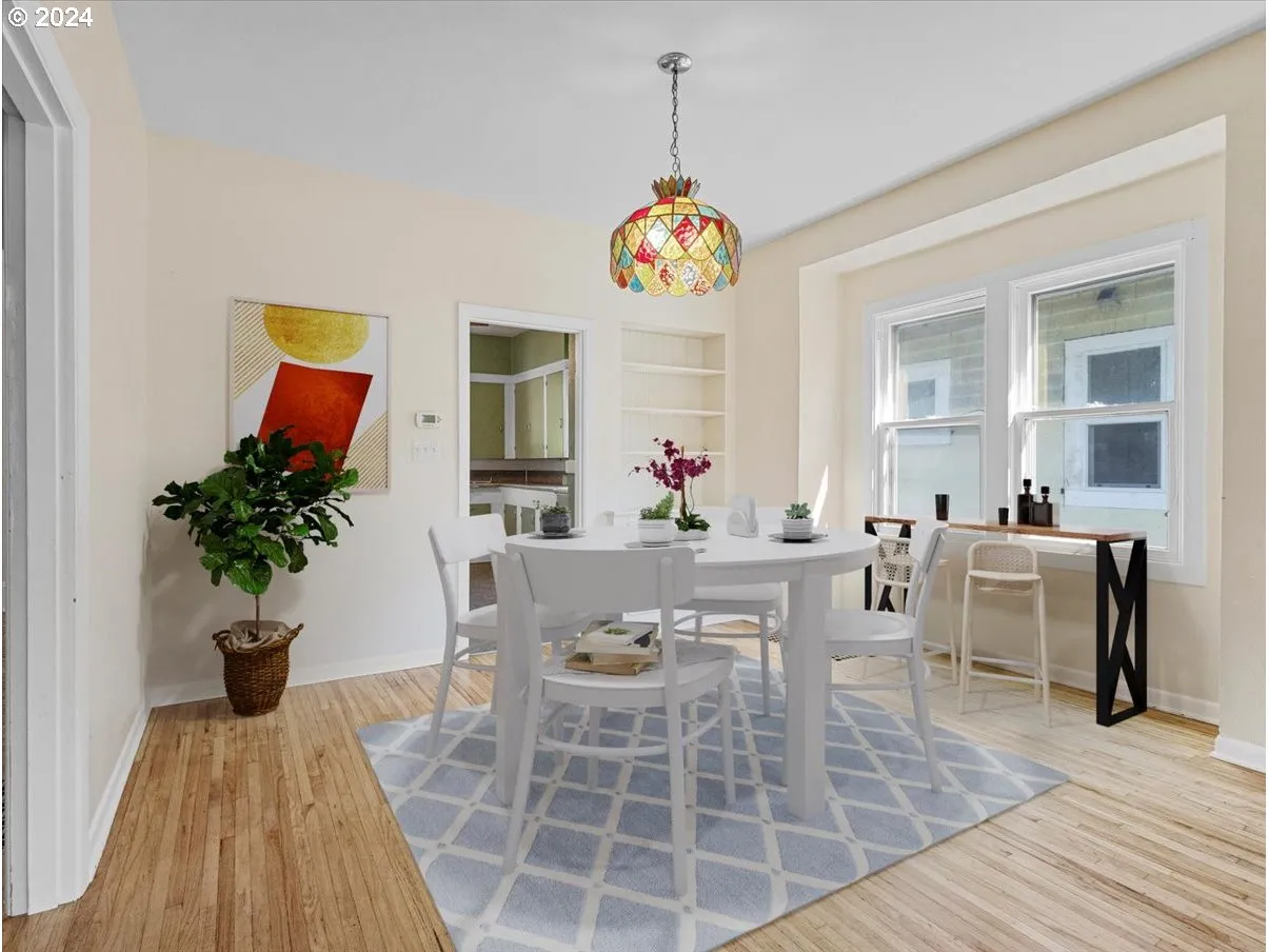 This Stunning 1911 Bungalow Has The Last Of The Gilded-age Charm! Brand New Roof, New Fence, New Landscaping, Newer Hot Water Heater, And Exterior Paint Is Done For You. A Huge, Covered Front Porch, With The Original Pillars; Old Growth Rose Bush, Flaming Bush, Plus Purple Rhododendrons, Are Here To Greet You & Your Guests. Leaded Glass Windows Adorn The Front Porch Approach, From The Main Bedroom, Daylight Closet, & South Side Of The Living Room. Thin Refinished Plank Oak, Hardwood Flooring Is Certain To Please, As You Walk Into An Open, Generous, Living Room, & Open Dining Room With A Built In Side Board. A Daylight Walk-in Closet, In The Front Bedroom Is Nice To Find In An Old Gem. Oh And Then, The Huge Kitchen Has Plenty Of Space For Your Center Chopping Block, Island, A Booth, Or More Shelving, Lots Of Room, Plus The Back Porch Is Off The Kitchen, Leading You To A Private, Fully Fenced Backyard. This Tuck-under Garage Has Built-in Shelving, & Under The Porch Storage! The Back Yard Is Newly Fully Fenced, And Gated. There Are 2 Bedrooms On The Main Floor, With A Full Bath In-between, In Separate Hall Way, Off The Dining Room. The Kitchen Is Off Of The Open Dining Room. There Are Internal Stairs To The Full Partially Finished Basement, Off The Back Of The Kitchen. The Basement Has 2 Bonus Rooms, One Smaller Than The Other. One Does Have A Closet, With No Door. The Other Is Much Larger. In The Basement There Is Also The Laundry Area, With Utility Sink, Storage Cupboards, A Tinker Bench, And Or Artisan Space. One Of The Owners Is The Listing Agent, Licensed To Sell Property In The State Of Oregon. A Few Photos Of The Living Room And Dining Room Are Virtually Staged.
