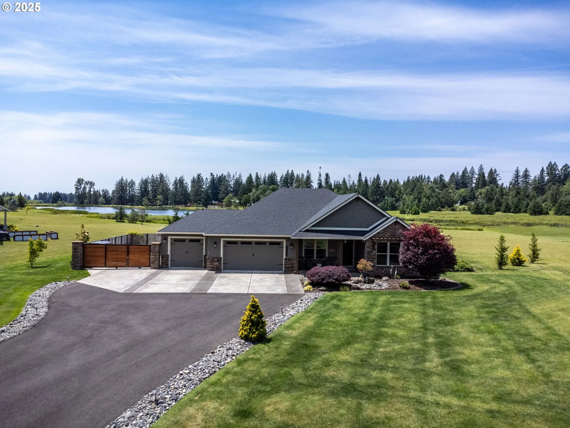 Gated Community With Custom Built Homes Surrounded By Approximately 52 Acres Of Common Space, Walking Trails, Tennis And Basketball Court, And Let’s Not Forget The Private Lake. This Lake Is Stocked With Bluegill And Largemouth Bass, Plenty Of Bird Watching And One Can Enjoy The Peaceful Sounds Of Water While Kayaking Or Canoeing. This Stunning, Single-level, Luxury Home Is Located On Approximately 1.65 Acres Of Waterfront Property With Private Views To The West. Enjoy Beautiful Sunsets And Peaceful Mornings While Sitting On Either Your Covered Front Porch To The East Or The Covered Patio To The West. The Home Has Large Hallways, Vaulted Ceilings, Engineered Hardwoods, And An Abundance Of Natural Light. The Main Living Area Has Beamed Ceilings With A Large Sliding Door To The Patio, Which Also Has A High Output Gas Heater For Those Cooler Nights. It Is Connected To The Open Entertainer’s Style Kitchen With A Large Island, Copper Sink, Gas Cooktop, And Double Ovens. Enjoy Eating At The Bar Or A More Formal Setting In The Dining Area. The Primary Suite Has All The Feelings Of A Vacation Get-a-way. This Retreat Will Allow You To Walk Outside To Enjoy The Morning Air Or Enjoy Sitting, Relaxing, And Reading With The Serene Views Out Back. The Primary Bathroom Has A Large Spa-like Shower With Double Sinks And Access To The Large Custom Built Closet Which Has An Entry Door To The Laundry Room. The Laundry Area Serves As A “mud Room” Off The Garage, But Without Any Signs Of Mud. There Are Beautiful Built-ins With Seating And Coat Storage In The Closet Or On The Wall Above The Bench. In Addition To The Two Additional Bedrooms And Bathroom With Tub And Shower, There Is A Large Office Space With Views Out The Front Of The Home. These Homes Don’t Come Available Often, So Enjoy The 8-mile Drive From I-5, And Come Take A Look At Your New Home! It’s Absolutely Gorgeous And Ready For Your Personal Touch.