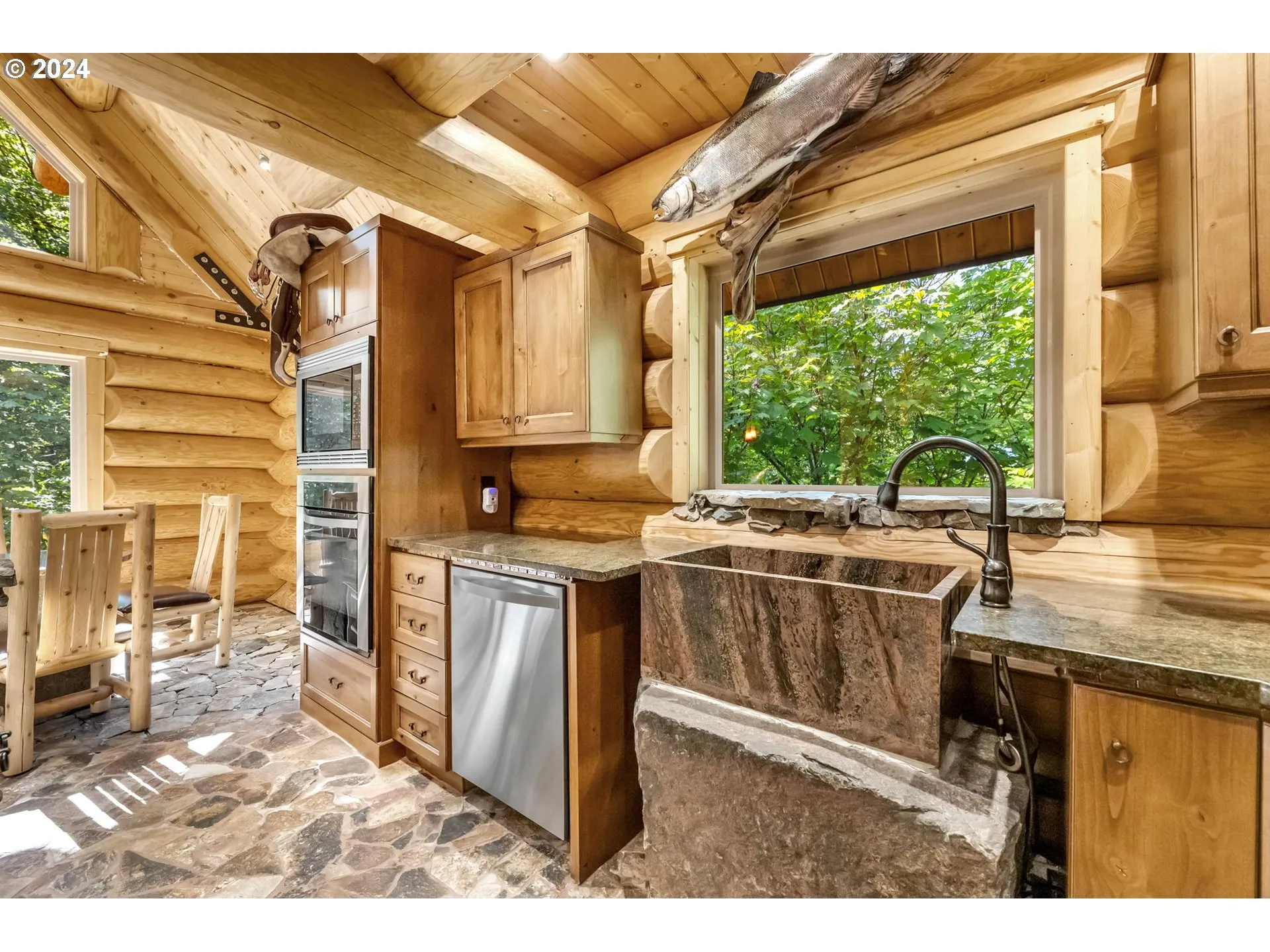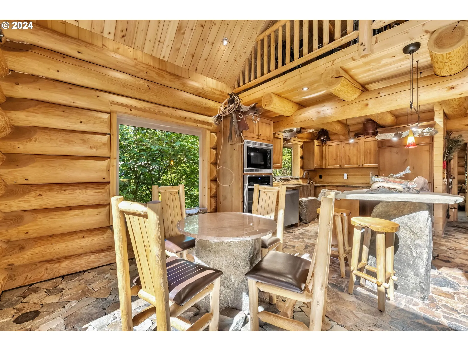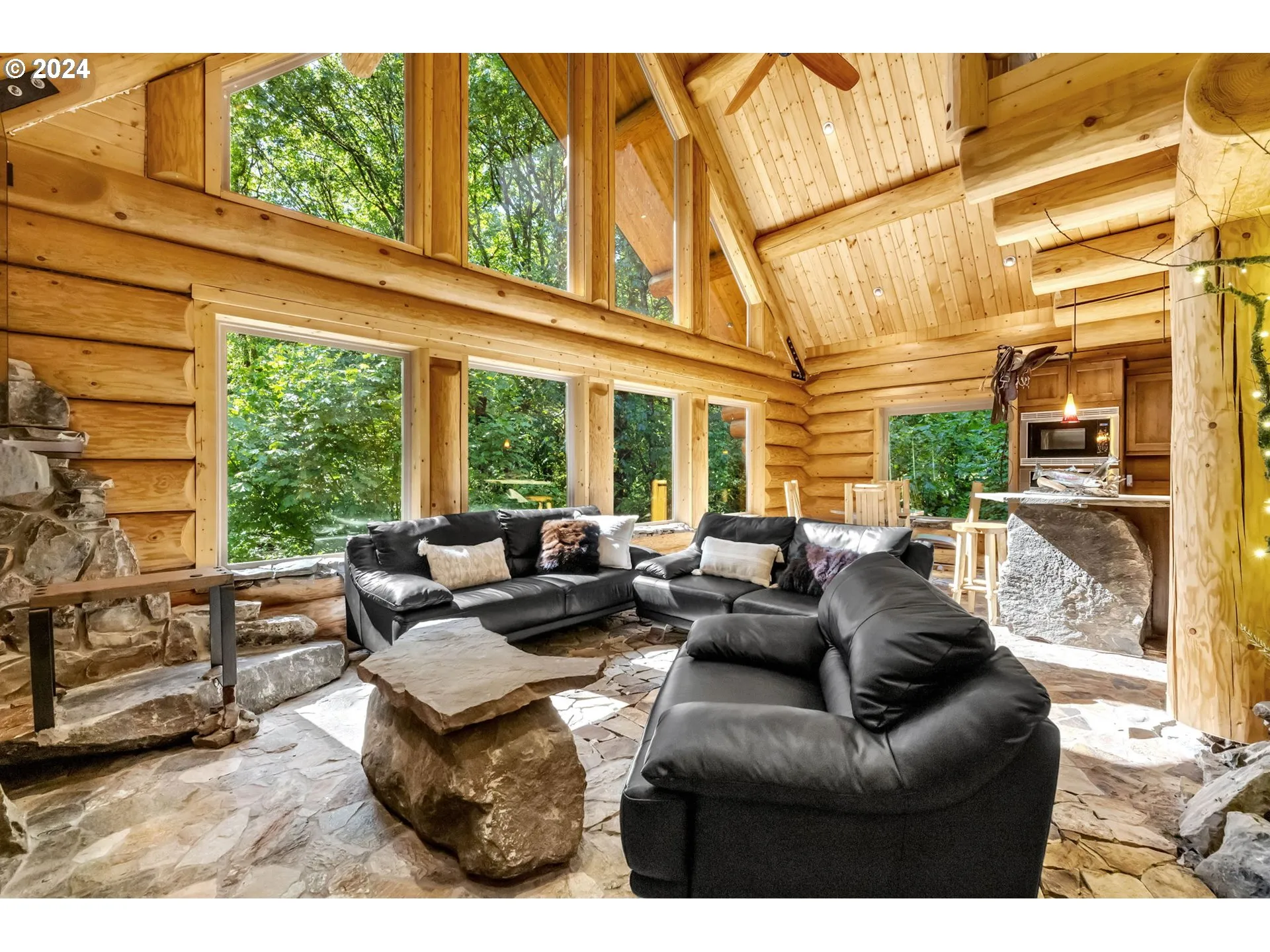 Welcome Home To This Unique And One-of-a-kind Custom Log Home Surrounded By Nature And Peaceful Tranquility. No Expense Was Spared In Creating This Log Home With Vaulted Ceilings, Rock Floors, A Rock Fireplace, And Other Custom Features That Make This Home A Work Of Art. The Great Room And Dining Area Are Vaulted With Large Windows Overlooking The Natural Setting. The Kitchen Has Hayes Alder Cabinets, Built-in Pantry With Pull-outs, Built-in Fridge, Oven, And Microwave. Other Custom Design Features Include A Rock Island With An Induction Cook-top And Bar Seating, Built-in Dining Table, Boulder Pedestal Granite Farm Sink. One Bedroom On The Main Level And A Bathroom With A Unique Rocked Walk-in Shower. Laundry Room With Washer, Dryer, And Sink. Large Vaulted Bedroom On Upper Level With A Walk-in Closet, Custom Built-ins And An Abundance Of Windows. A Spacious Loft Area Rounds Out The Upper Level. Property Is Easy Maintenance With Protected Greenspace Around It. Located To La Center Or Battle Ground And Easy To Get To Freeways. Priced Below Tax-assessed Value. A Very Special Property.