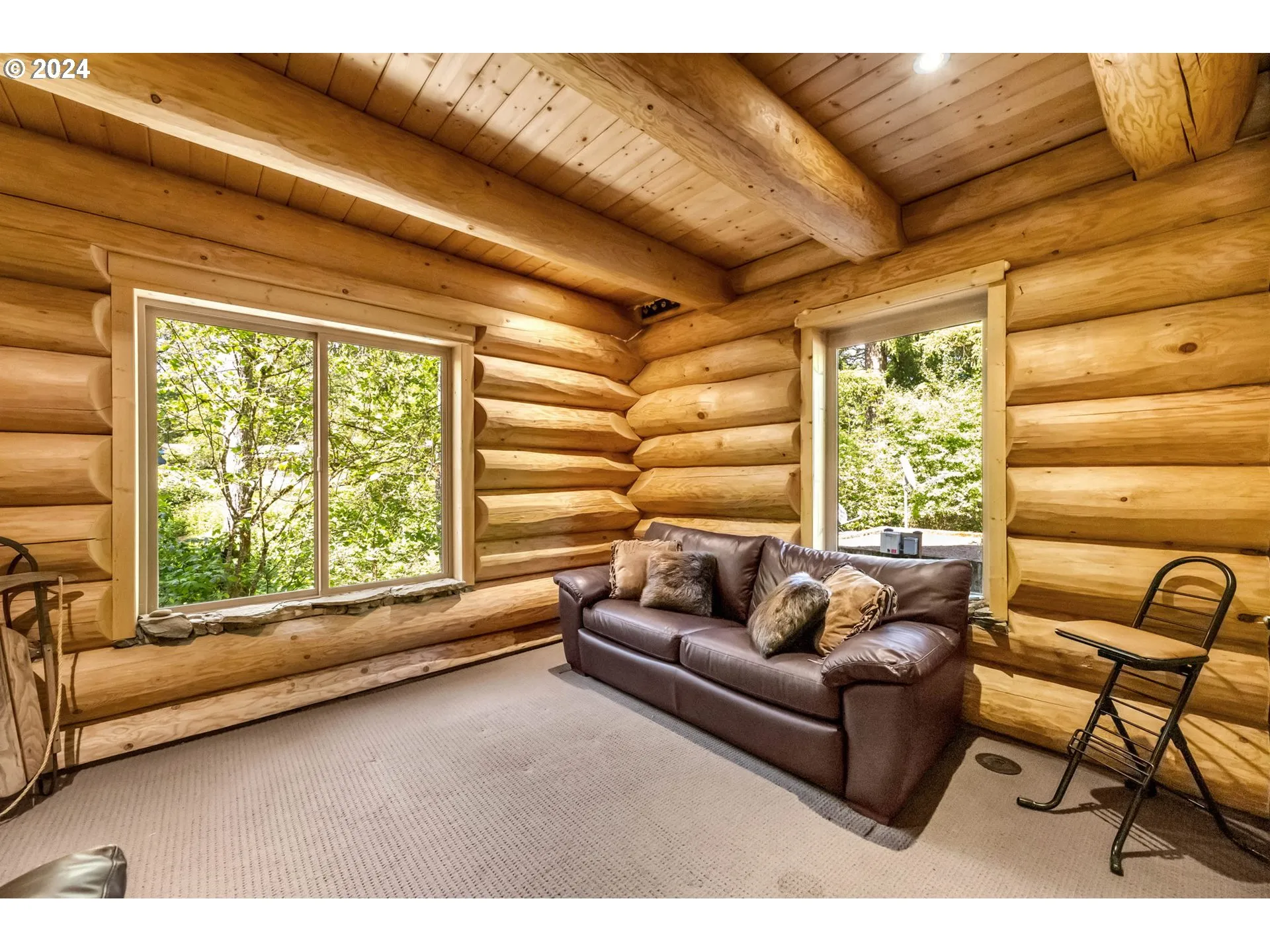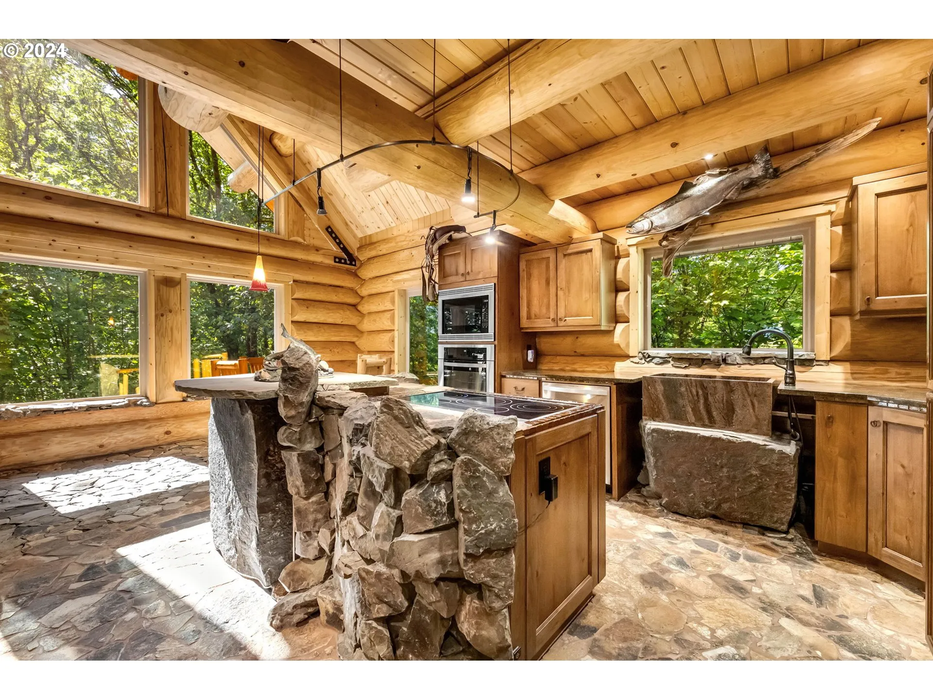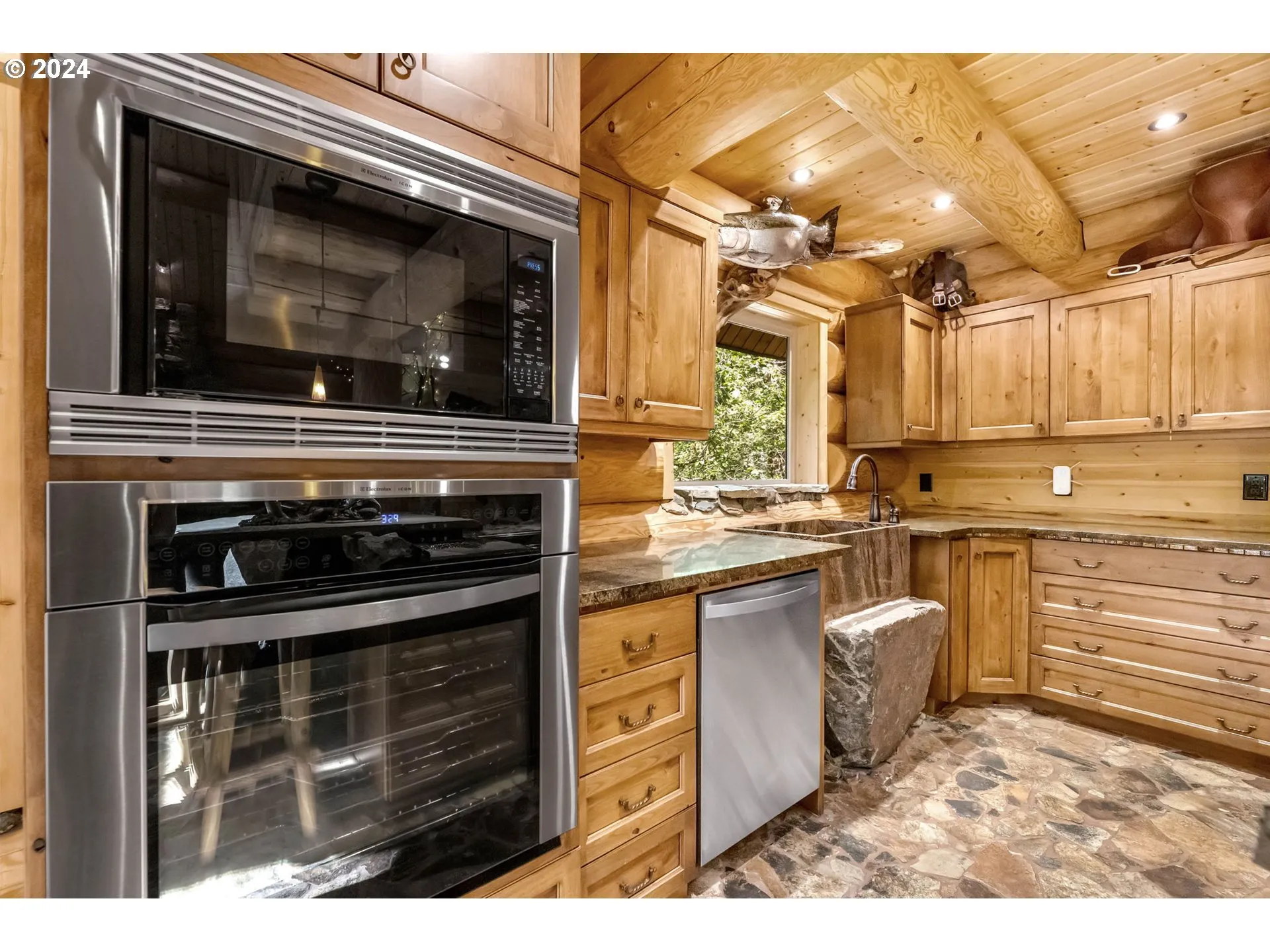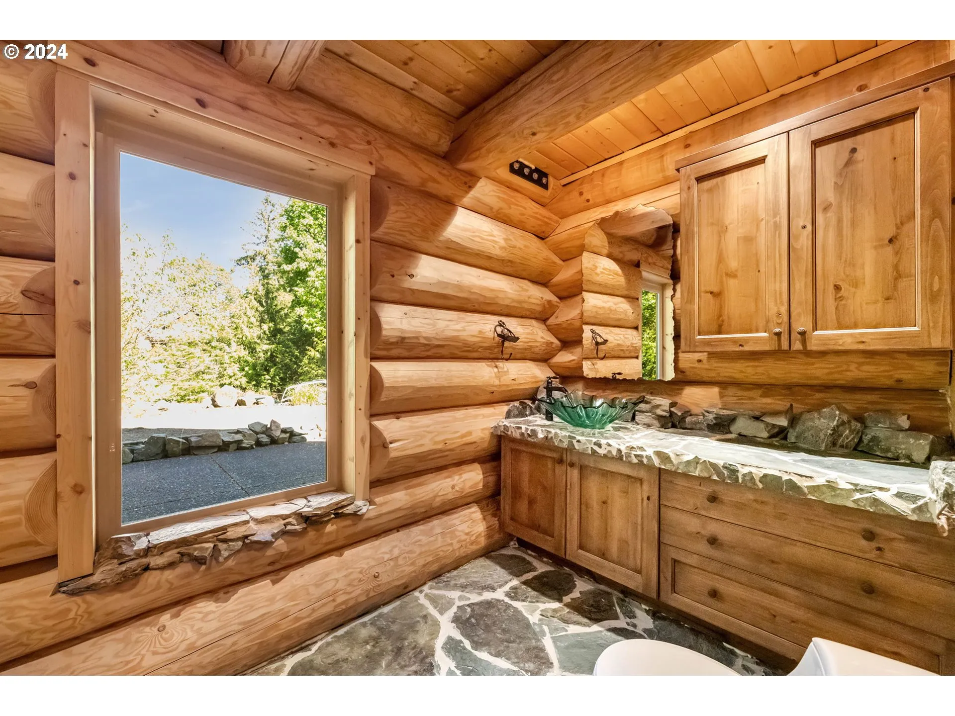 Welcome Home To This Unique And One-of-a-kind Custom Log Home Surrounded By Nature And Peaceful Tranquility. No Expense Was Spared In Creating This Log Home With Vaulted Ceilings, Rock Floors, A Rock Fireplace, And Other Custom Features That Make This Home A Work Of Art. The Great Room And Dining Area Are Vaulted With Large Windows Overlooking The Natural Setting. The Kitchen Has Hayes Alder Cabinets, Built-in Pantry With Pull-outs, Built-in Fridge, Oven, And Microwave. Other Custom Design Features Include A Rock Island With An Induction Cook-top And Bar Seating, Built-in Dining Table, Boulder Pedestal Granite Farm Sink. One Bedroom On The Main Level And A Bathroom With A Unique Rocked Walk-in Shower. Laundry Room With Washer, Dryer, And Sink. Large Vaulted Bedroom On Upper Level With A Walk-in Closet, Custom Built-ins And An Abundance Of Windows. A Spacious Loft Area Rounds Out The Upper Level. Property Is Easy Maintenance With Protected Greenspace Around It. Located To La Center Or Battle Ground And Easy To Get To Freeways. Priced Below Tax-assessed Value. A Very Special Property.