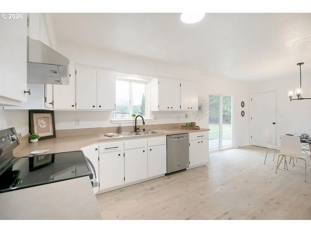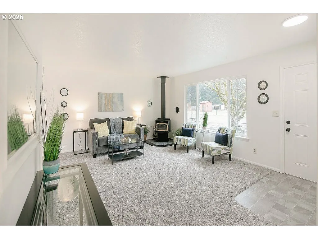 Castle Rock — Updated — 3 Bedroom / 1 Bathroom — 1056 Sqft — New Flooring Throughout — Living Room W/ Woodstove — Kitchen W/ New Stainless Appliances — Dining Area — Primary Bedroom W/ Access To Bathroom — New Fixtures — New Interior & Exterior Paint — Vinyl Windows — Double Garage — Large Yard — Dog Run — Patio — Rv Parking + More — Large Lot 16,177 Sqft — Trees — Landscaped — Garden Space — Dead End Street — Minutes To Downtown Castle Rock — Less Than An Hour To Vancouver / Pdx