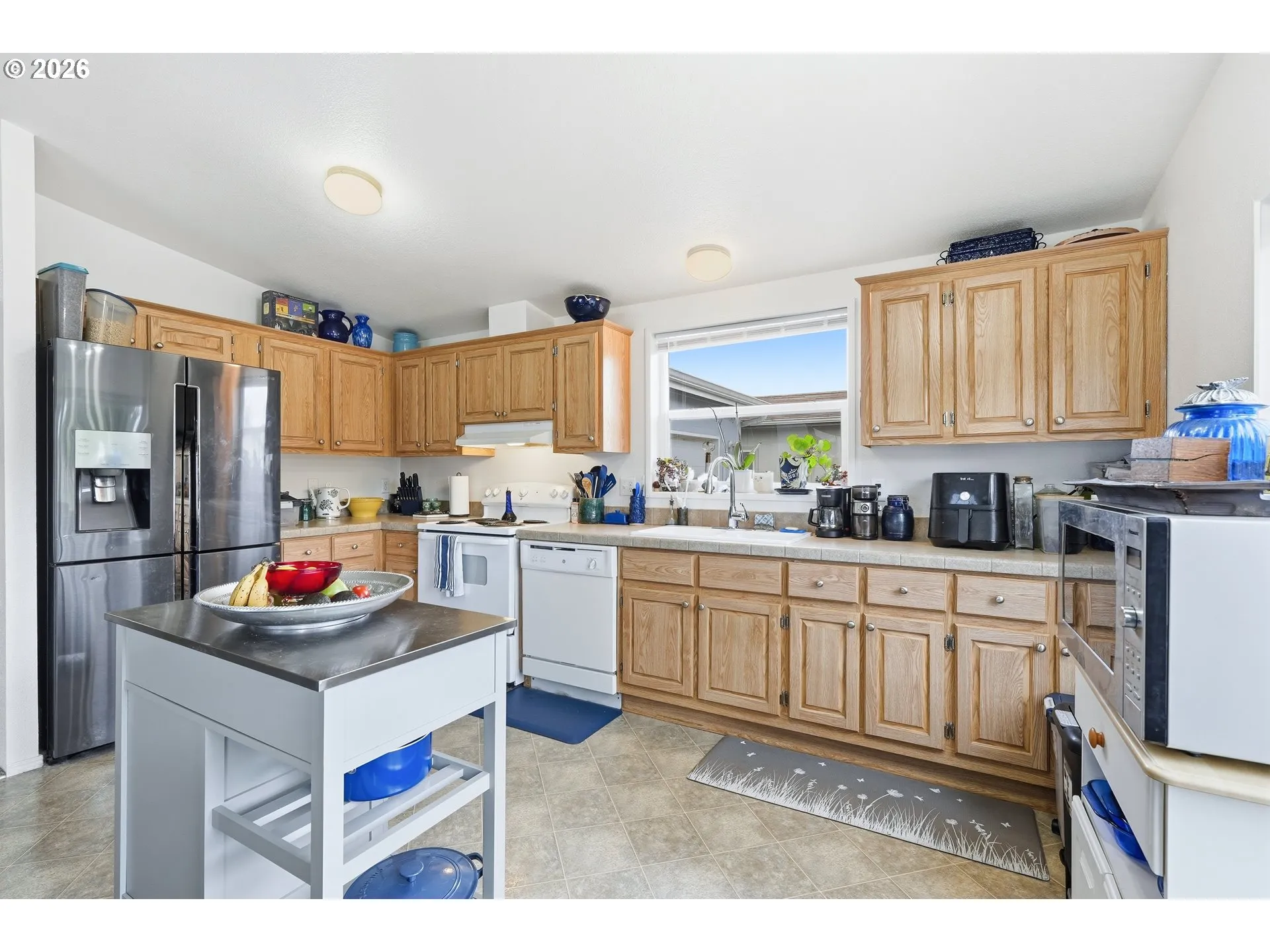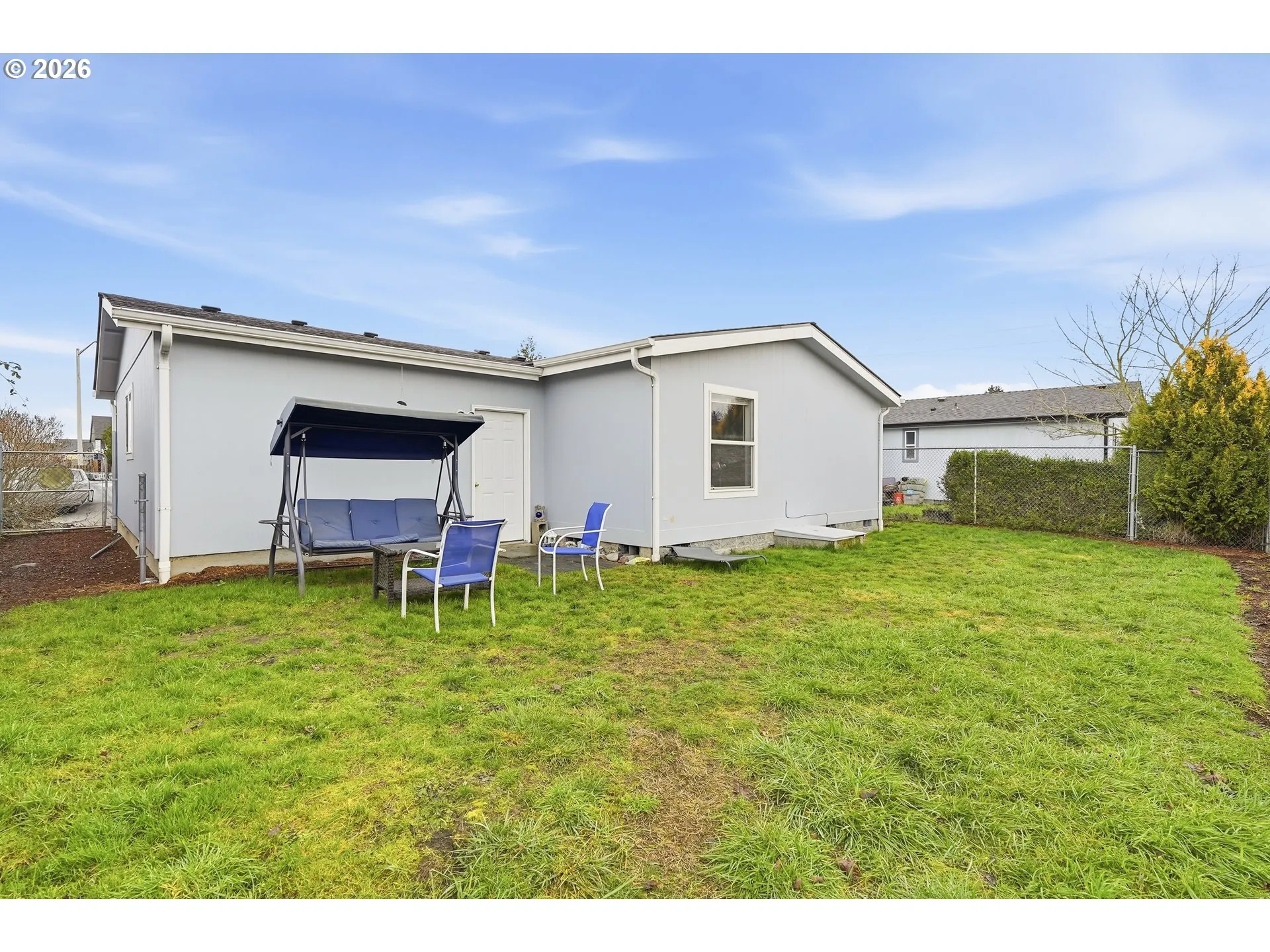 Situated In A Quiet Cul-de-sac, This Move-in Ready Home With A New Roof And New Carpet Installed Last Year, Offers A Blank Canvas To Make It Yours, On Land That You Own. Inside, You Will Find An Open-concept Layout With Vaulted Ceilings That Creates A Bright And Open Living, Kitchen, And Dining Area, Perfect For Hosting And Comfortable Everyday Living. The Generously Sized Kitchen With Classic Oak Cabinetry Offers Plenty Of Storage. Leading Back To The Two Bedrooms And Two Full Bathrooms This Home Offers, You Will Find Your Laundry Room, With A Newer Washer And Dryer Included, That Leads Out To Your 1 Car Garage Providing Secure Parking And Additional Storage Space. The Primary Suite Includes An Attached En-suite With A Walk-in Shower And Ample Storage For Linens. Outside, The Yard Is Low-maintenance And Fully Fenced, Perfect For Your Dogs, A Place To Relax, Or To Flex Your Green-thumb. With It’s Recent Updates And Convenient Features, This Is The Perfect Home If You Are Looking For Comfortable And Easy Living.