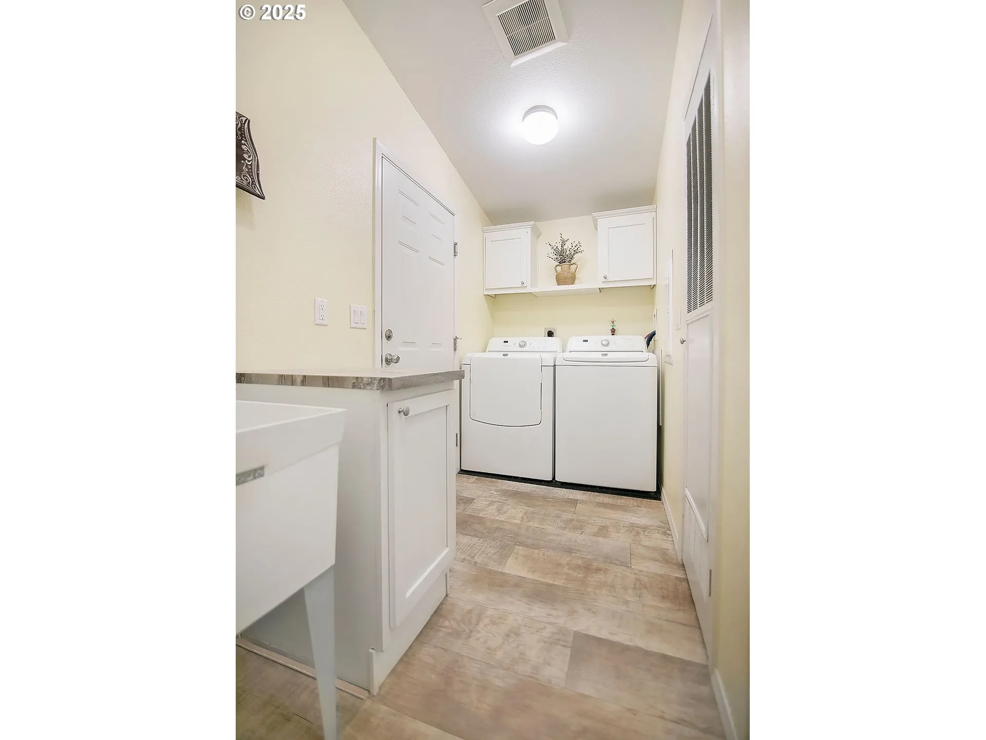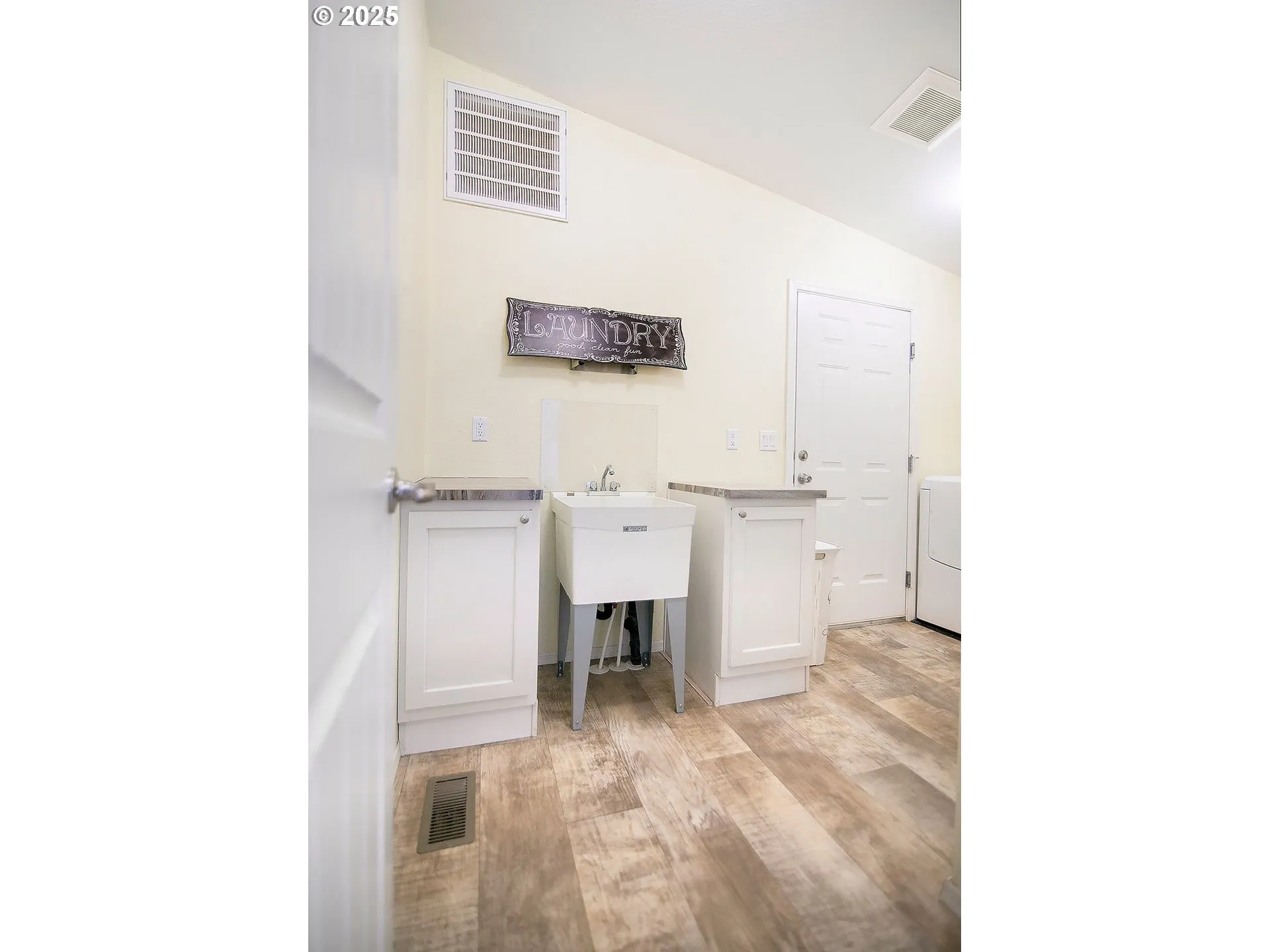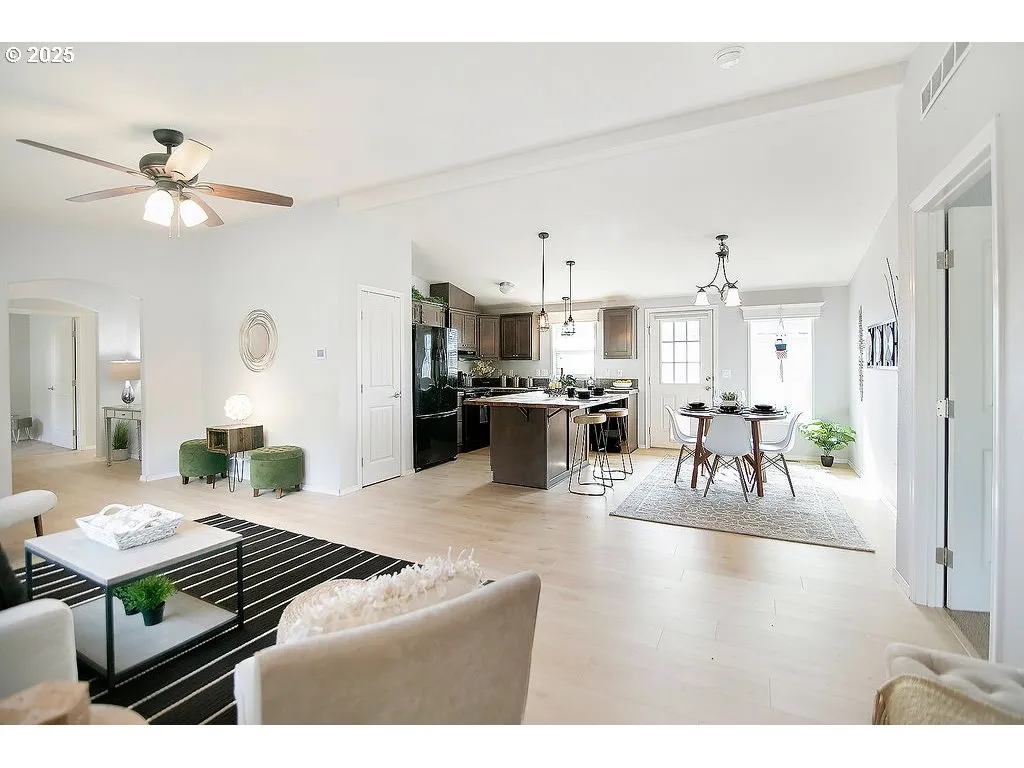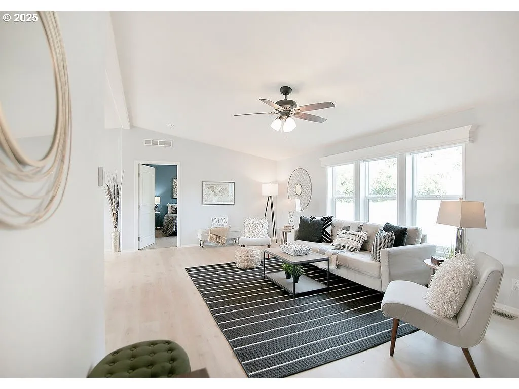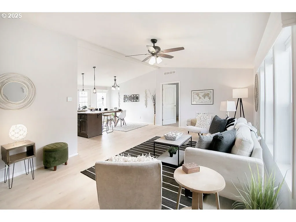 Kalama — 1 Level — Large Corner Lot — 1512 Sqft — 3 Bedrooms / 2 Bathrooms — Living Room — Kitchen W/ Island & Eating Counter / Pantry — Plus Dining Room — Great Room Concept — Primary Bedroom W/ Walk-in Closet & Bathroom — Laundry Room — Vaulted — New Laminate Flooring — Heat Pump & A/c — Vinyl Windows — Ceiling Fans — Attached Double Garage — Rv Parking — Fenced Yard — Garden Space — Patio — Tool Shed — 30 Minutes To Vancouver / Portland Area — Minutes To Kalama — Minutes To I-5