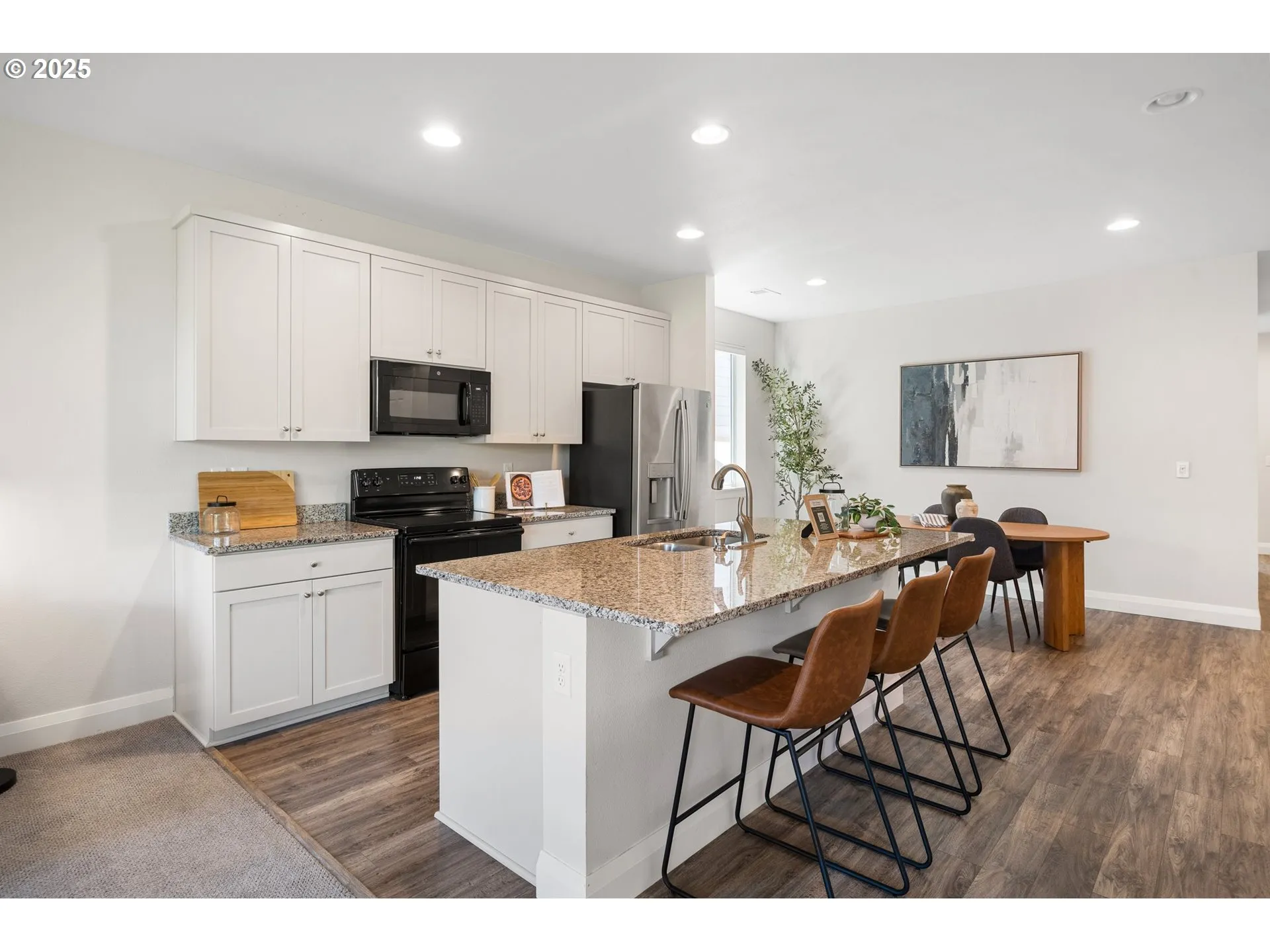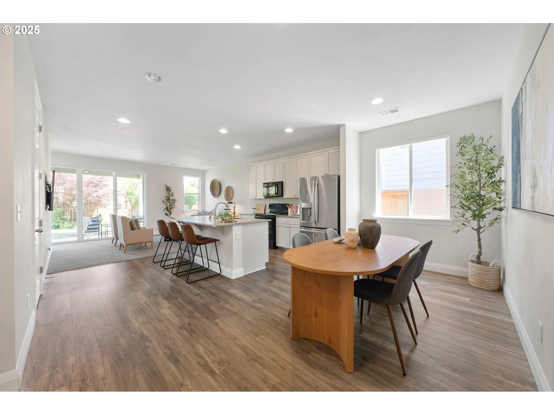 Lovely One-level Home With 3-car Garage In Laurel Woods!step Inside To A Wide Entryway With Durable Lvp Flooring That Extends Into The Kitchen And Dining Areas. The Centrally Located Kitchen Includes All Appliances, Granite Countertops, And A Spacious Eating Bar—ideal For Entertaining. The Open Living Area Features A Designated Office Nook And A Large Sliding Door That Leads To The Covered Patio And Beautifully Manicured Backyard.the Generous Primary Suite Offers A Walk-in Closet, Double Sinks, And A Walk-in Shower. Washer And Dryer Are Included, And This Home Also Comes With An American Home Warranty For Peace Of Mind.