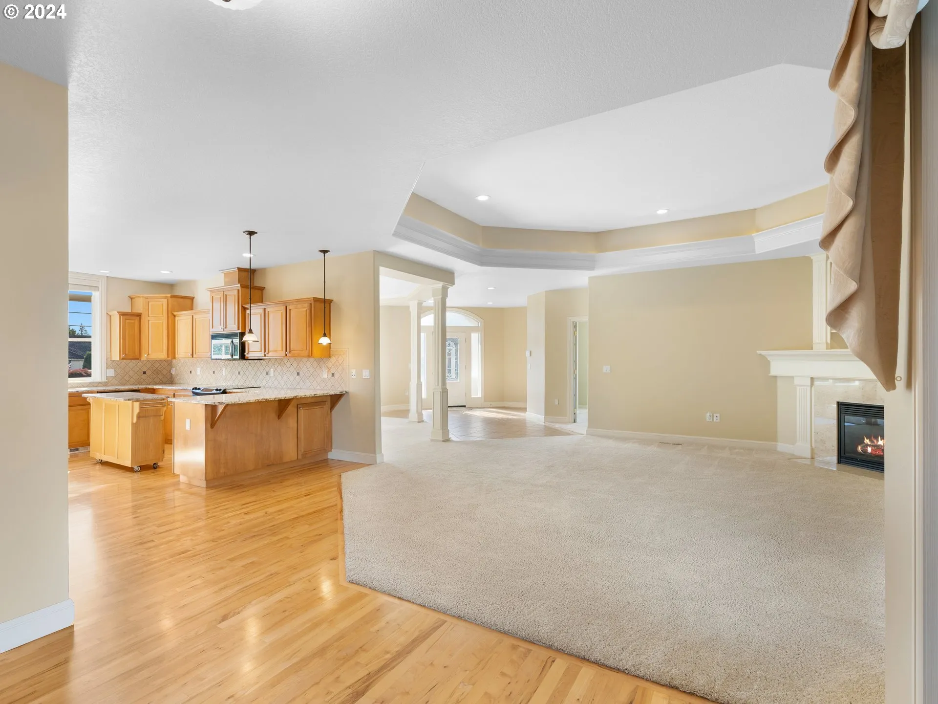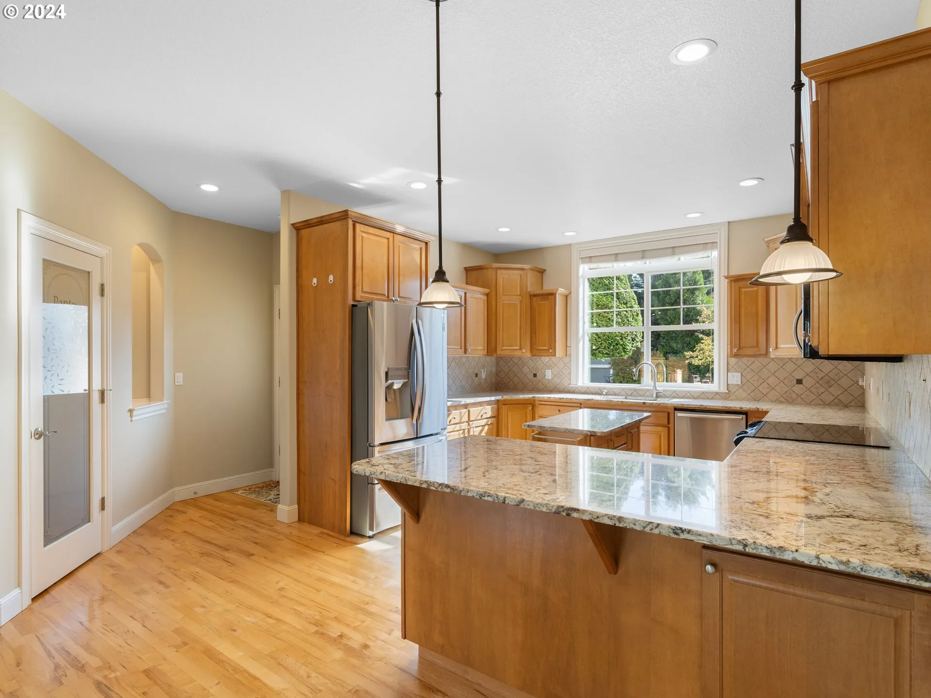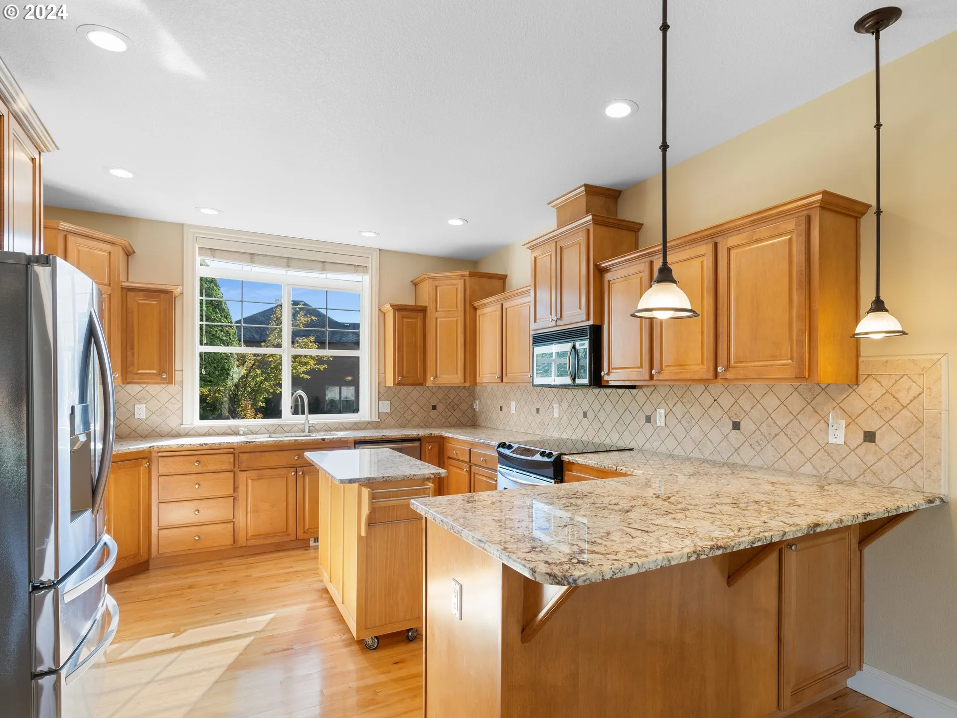 This Single-level Home, Built In 2003, Offers An Inviting Layout With 2,219 Sqft Of Living Space And Sits On A Beautifully Landscaped 0.23-acre Corner Lot. Natural Light Pours In Through The Many Windows, Showcasing The Oak Floors And Fresh Paint Throughout. The Heart Of The Home Is The Cozy Kitchen Featuring A Cozy Eating Bar, Which Opens To A Spacious Living Area Complete With A Gas Fireplace. The Primary Suite Offers Double Sinks, And A Lovely Walk-in Closet. The Other Two Bedrooms Offer Plush Carpet Along With A Recently Updated Guest Bathroom Providing Extra Comfort For Visitors. Step Outside To Enjoy The Covered Patio, Perfect For Entertaining, And A Meticulously Maintained Yard Featuring A Sprinkler System, Root Watering System, And Low-maintenance Landscaping. Enjoy Blueberries, Raspberries, Apples And Plums All Summer Long. The Fenced Backyard Includes Trex Fencing On Both Sides Of The House, A Garden Shed, And Plenty Of Privacy. No Need To Worry About Storage As This Home Features A Giant Garage With Plenty Of Shelving And A Handy Work Area. With Attention To Detail In Every Corner, This Home Is Ideal For All As It Is Stunning, Low-maintenance, And A Thoughtfully Designed Space. Welcome Home!
