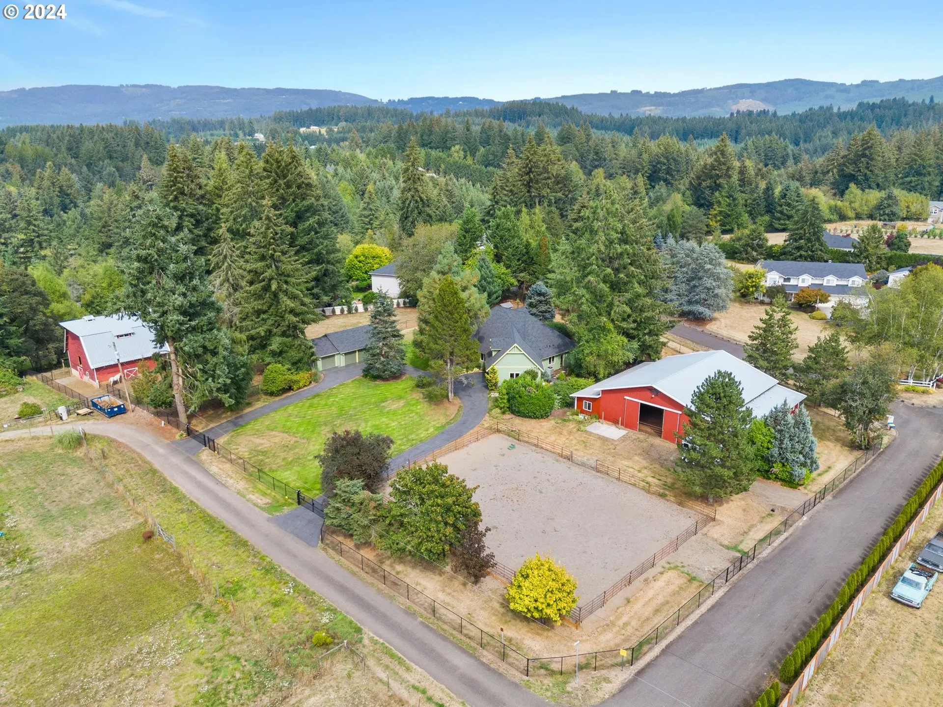Welcome To This Beautiful Ranch-style Home, Situated On A Gated 2.5 Acres, Offering A Blend Of Elegance And Character With Its 2,249 Sq Ft Of Custom Finishes. As You Enter, You’re Welcomed By A Stunning Entry Floor Crafted From A Camas Tree And Unique Closet Doors Salvaged From A 1700s Ship. The Home Features 3 Rooms , 2.5 Bathrooms. There Is Also Space Above The Attached Garage To Build An Extra Office Or Bedroom. In The Kitchen You Will Find A Gorgeous Oversized Granite Island A Walk In Pantry, And A Butlers Pantry Making This Home Great For Relaxing & Entertaining. For Those With A Passion For Equestrian Life Or Hobbies, The Property Includes Two Barns, A Heated Tack Room, An Office, A Weather Proof Arena And Ample Room For Horses, Vehicles, And Rvs. In The Detached Garage You Will Find A Thoughtfully Designed 1-bedroom, 1-bathroom Apartment. Enjoy A Perfect Blend Of Custom Style And Functional Space In This Exceptional Property.