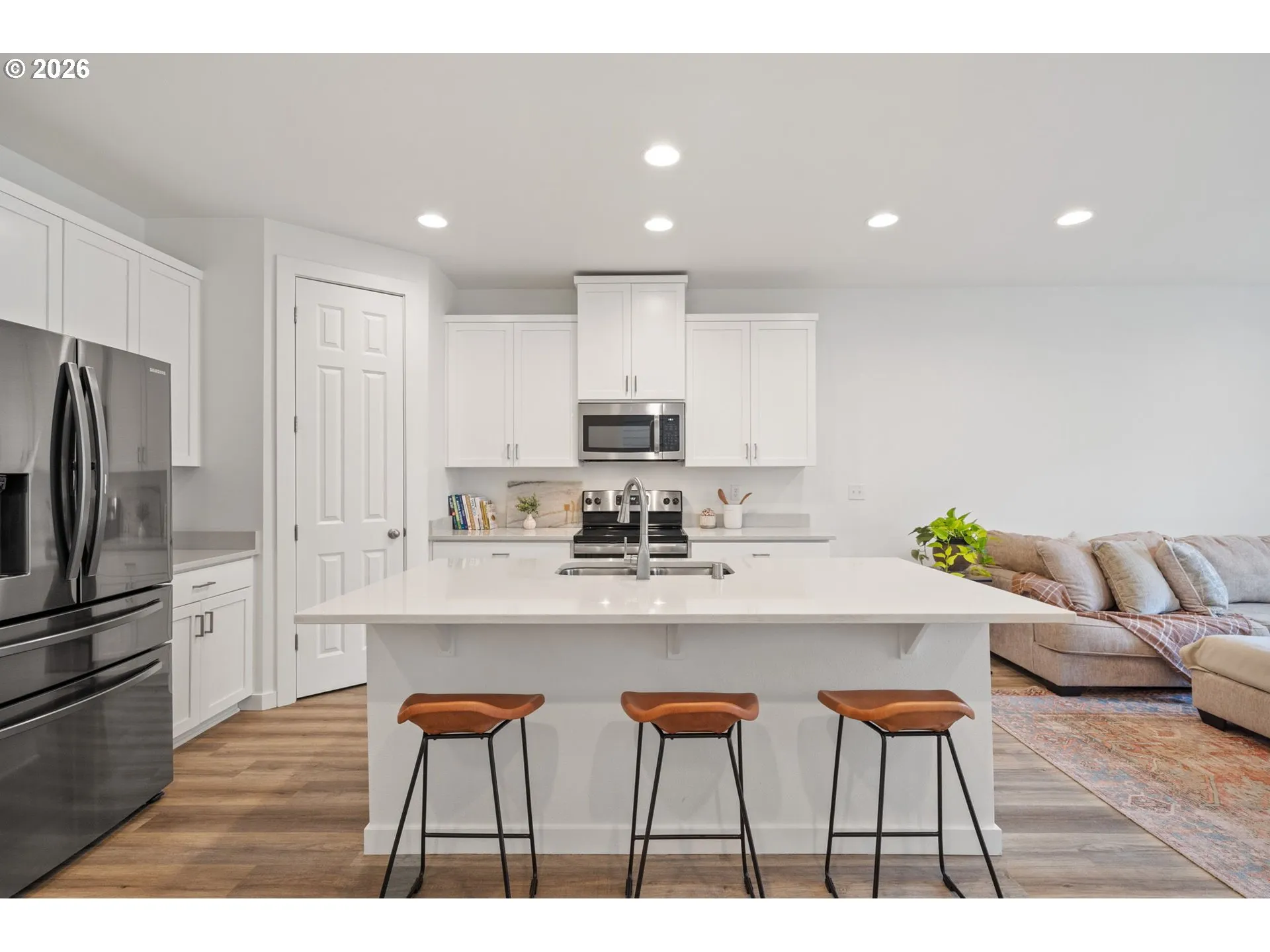 This Beautiful, Newer Townhome Truly Stands Out From The Competition, Offering Many Upgrades For Its Price Point. Features Include 9-foot Ceilings, Tall Doors, And A Light, Bright Interior With Laminate Flooring Throughout The Main. The Kitchen And Bathrooms Showcase Quartz Countertops And Crisp White Painted Cabinetry. The Inviting Great Room Includes A Cozy Fireplace And Flows Seamlessly Into The Dining Area, Making It Ideal For Everyday Living And Entertaining. A Convenient Powder Bath Is Located On The Main Level. Upstairs, You’ll Find A Spacious Layout Highlighted By A Lovely Primary Suite With A Generous Walk-in Closet. The Laundry Room Is Conveniently Located On The Upper Level. A Hallway Bathroom Offers A Double-sink Vanity And A Tub/shower Combination. Outside, Enjoy A Covered Patio And A Low-maintenance Backyard Featuring Fresh, Green Astroturf That Looks Great Year-round. Ideally Located With Excellent Access To Freeways, Shopping, Trails, And Downtown Ridgefield, This Home Offers Both Comfort And Convenience.