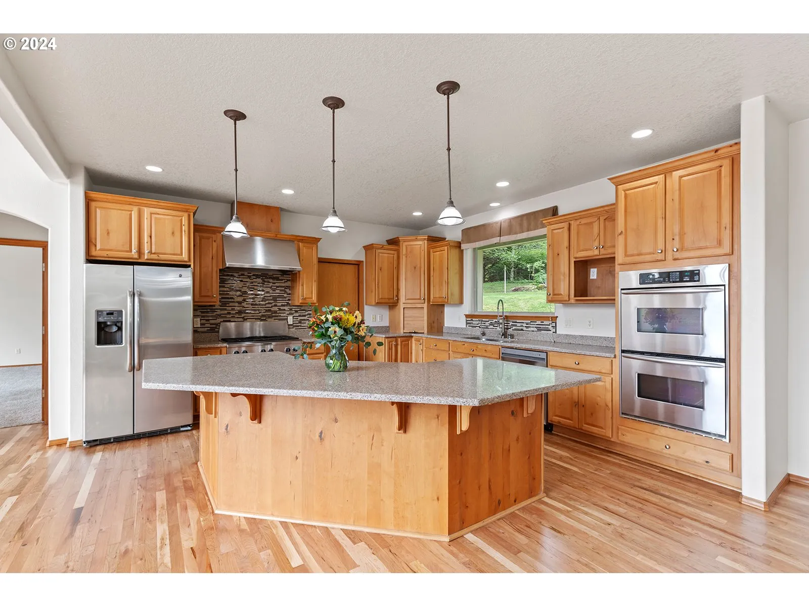 Enter Into This Spacious Living Area And Immediately See The High Ceilings And Wall Of Windows With Exceptional View Which Includes Mt Hood. The Entry Leads You To The Vaulted Great Room Which Has A Stone Fireplace With Mantle, Newly Re-finished Hardwoods Floors, Is Open To The Kitchen With An Extra-large Island, And A Separate Large Dining Area. There Is Also A Door To The Partially Covered Deck To Enjoy The View And Living Outdoors! The Kitchen Has Many Amenities Which Include The Hardwood Floor, Granite Counters, Gas 5 Burner Built-in Range, Double Ovens, And Refrigerator. All Appliances Are Stainless-steel. The Cabinets Provide Lots Of Storage With Pull Outs Shelves In Various Cupboards, Appliance Garage, And Crown Moulding. The Pantry Off Kitchen Is Approximately 6’x9′ And Has Wood Built-in Shelving! Additional Wall Of Storage Cabinets Is In The Large Mud Room Off The Garage Plus Separate Laundry Room With Sink And Cabinets. The Primary Suite Is On The Main Level, And Is Spacious, With A Door To The Deck. It Has Double Walk-in Closets With One Being Extra-deep. The Primary Bathroom Has A Soaking Tub Plus Walk-in Shower, With Double Shower Heads, One Being A Rain Shower. The Extra-long Counter Has Double Sinks. Also, On Main Level There Is An Office With Wood Floor And Door To Deck. Upstairs There Is The Balcony And Loft, Which Enjoy The Great View, And Also Has 2 Bedrooms, Full Bathroom, And An Extra-large 4th Bedroom/family Room That Could Be A Large Project Room. This Project Room Has A Separate Heat Pump, Extra-large Walk-in Closet, And Exterior Access Door And Stairs. The Great Room And Finished Basement Are Wired For Surround Sound. Recently Painted Exterior Of Home In Last 2 Years.