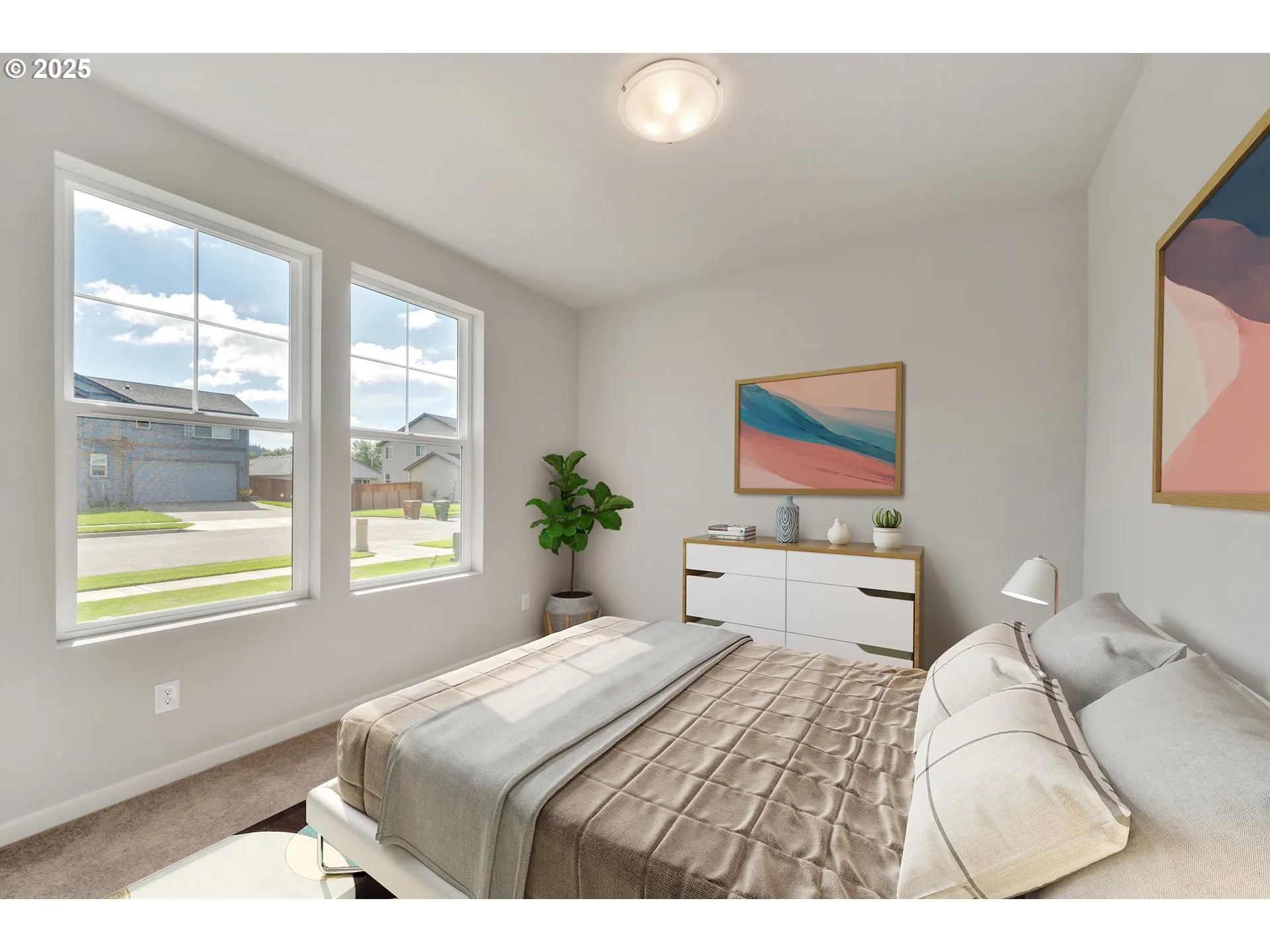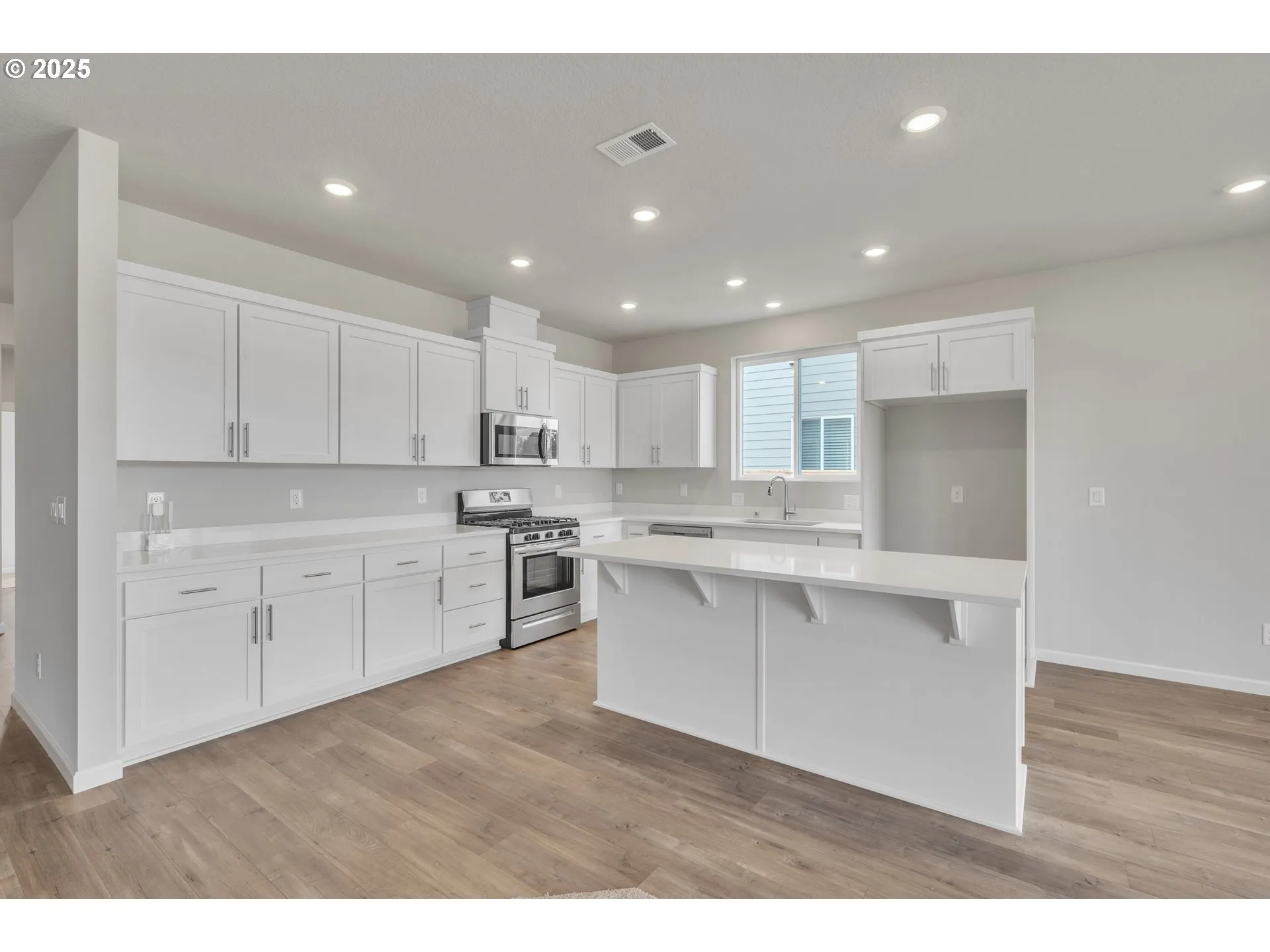The One-level Elmhurst Features A Open Split-design 3 Bed/2 Bath Layout Allowing Great Privacy. Spacious Great Room With Gas Fireplace Opens To The Modern Kitchen Featuring Quartz Counters, S/s Appliances, Oversized Island And Pantry. Bedroom 3 Has French Doors And Can Be Used For A Den Or Office. Also Included- Washer, Dryer, Refrigerator, A/c, Blinds And Backyard Landscaping And Fencing. Pix Of Similar Home. Home Complete May, 2025.