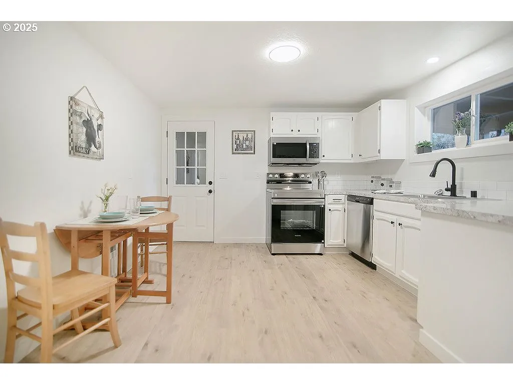 Rainier — 1.3 Acres W/ Creek — 2+ Bedroom / 1 Bathroom — 1284 Sqft — Living Room — Kitchen W/ Eating Space — Upstairs Bonus Area For Bedroom / Craft Area / Office / Play Room — Remodeled & Updated — Stainless Appliances — Quartz Countertops — Laundry Room — Newer Roof — New Flooring — New Interior & Exterior Paint — New Fixtures — Vinyl Windows — Fantastic Yard — Patio — Fenced — Garden Space — Garage W/ Attached Shop @ 1152 Sqft Plus Large Carport — Plus 11 X 16 Additional Outbuilding — Rv Parking — Well — Septic — Less Than 1 Hour To Portland