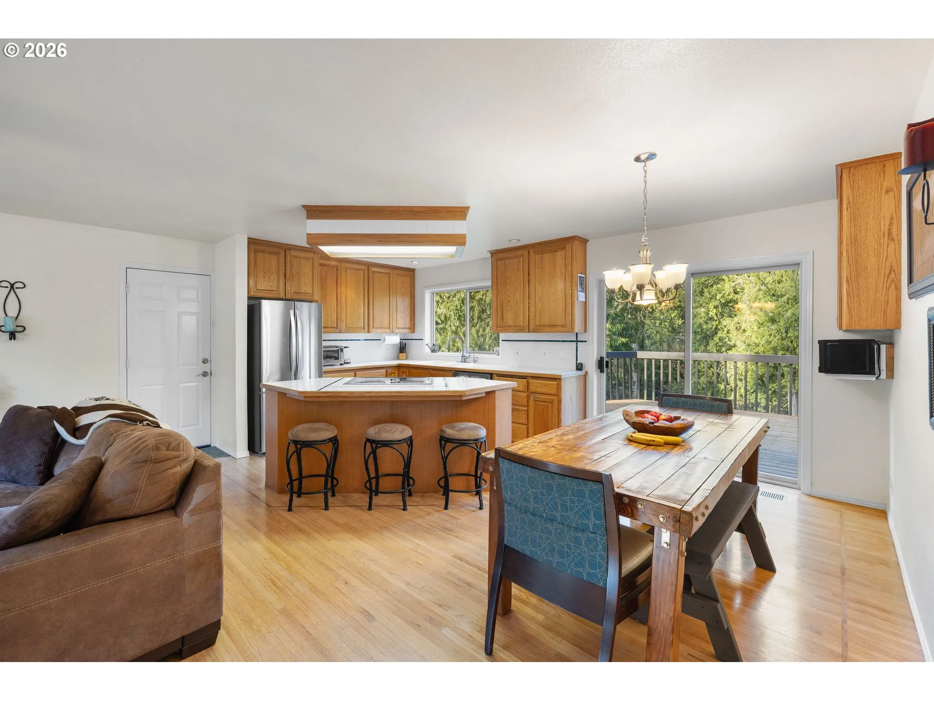 Welcome To This Rare, Private 2-acre Daylight Ranch Nestled In A Serene, Tree-surrounded Setting Along Abernathy Creek. This Truly Special Property Offers Peaceful Seclusion With Beautiful Natural Views In Every Direction. The Main Level Features A Spacious Open Floor Plan, Ideal For Both Everyday Living And Entertaining. The Kitchen Includes An Island Perfect For Gatherings, While The Primary Bedroom On The Main Level Offers An Ensuite Bathroom And An Oversized Walk-in Closet. A Convenient Laundry Room With A Sink Is Also Located On The Main Floor For Ease Of Living Enjoy The Tranquil Surroundings From The Expansive Wraparound Deck Or Through The Many Large Windows That Bring The Outdoors In. The Lower Level Includes A Generous Family Room With High Ceilings, A Cozy Wood-burning Stove, And Two Additional Bedrooms.outside, You’ll Find A Gazebo, Garden Shed, An 18 X 20 Aluminum Shop With A Gravel Floor—perfect For Hobbies, Storage, Or Projects. This Property Is A Rare Blend Of Privacy, Nature, And Comfortable Living. Cameras On Property And Showings By Appointment Only.