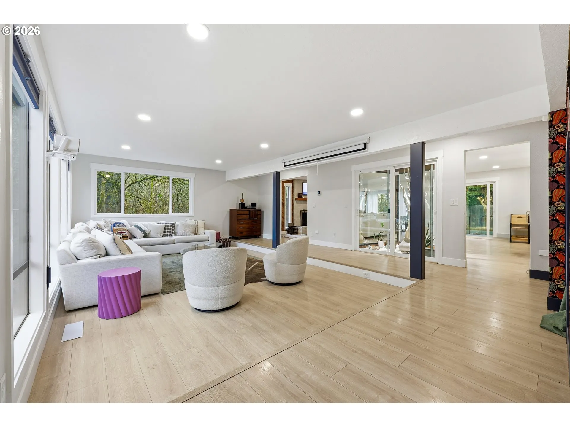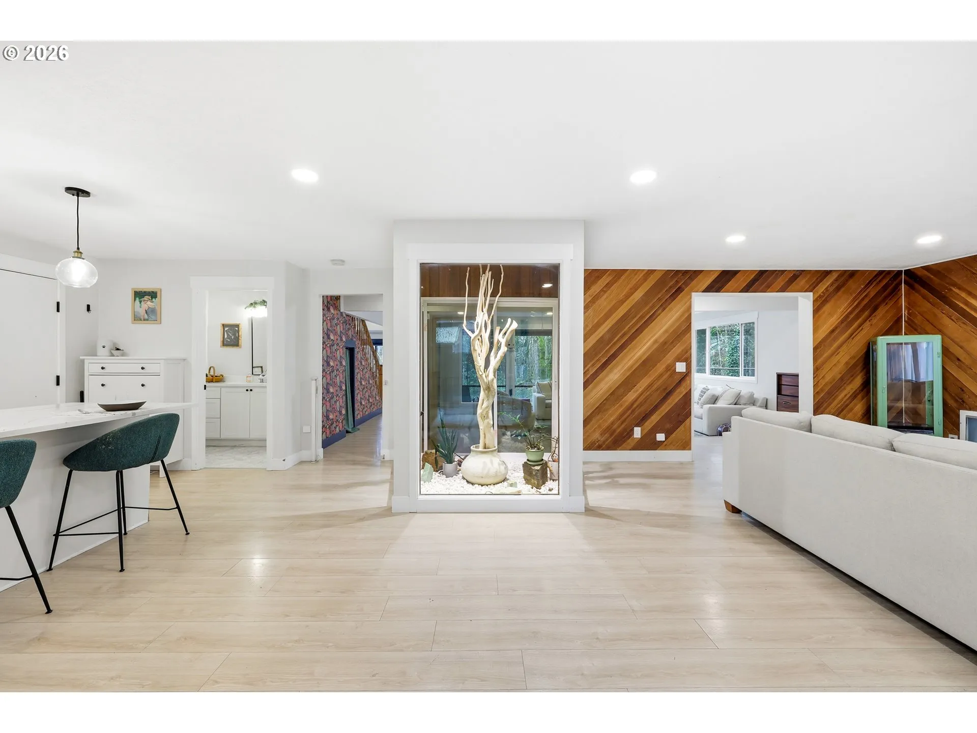 Just Beyond Royal Oaks Golf Club, Tucked Quietly At The End Of The Street, Is A Home That Feels More Discovered Than Found. The Most Private Property On The Block Unfolds Inward Around A Dramatic Two-story Atrium, Where Light Pours Down From A Skylight Above, Where Grow Lights Nurture Greenery Year-round, Turning The Heart Of The Home Into A Living, Breathing Centerpiece.massive Windows Stretch In Every Direction, Framing Views Of The Oak Tree Preserve And The Swimming Pool Beyond. The Connection To Nature Is Constant; Sunlight Shifts, Leaves Move, Water Glimmers. A Sunken Living Room Wrapped In Forest-facing Glass Creates An Intimate Gathering Space, As Close As Vancouver Gets To A True Conversation Pit. In The Living Room, Restored Geometric Wood Walls Flank The Updated Wood-burning Fireplace, Returned To Their Original Organic Beauty After Years Hidden Beneath Paint.outside, The Home Continues Its Quiet Drama. Native Landscaping Fills The Front Yard, Seeded With Eco-lawn And Intentionally Left To Rest, Honoring A “leave The Leaves” Philosophy. A Welded Metal Pathway Leads To A Fire Pit Area Near Covered Wood Storage, While The Opposite Side Of The Home Reveals An In-ground Kidney Shaped Pool Over Eight Feet Deep, Complete With An Included Hot Tub On The Covered Deck. It’s Private, Serene, And Unexpected.the Primary Suite Is Expansive, With A Tucked-away Office Nook Affectionately Called “the Treehouse,” Offering Treetop Views And Creative Calm; With Private Access To An Expansive Deck Overlooking The Pool. Upstairs Bedrooms Feature Clean Carpet, While Brand-new Hickory Engineered Hardwood Flows Through The Stairs, Primary Suite, And Hallways. Practical Upgrades Abound: Three Garages Plus A Mini Garage For A Golf Cart Or Pool Storage, An Added Garage Pantry With Utility Sink, And A New Hvac System, Water Heater, And Roof, All Under Five Years Old.