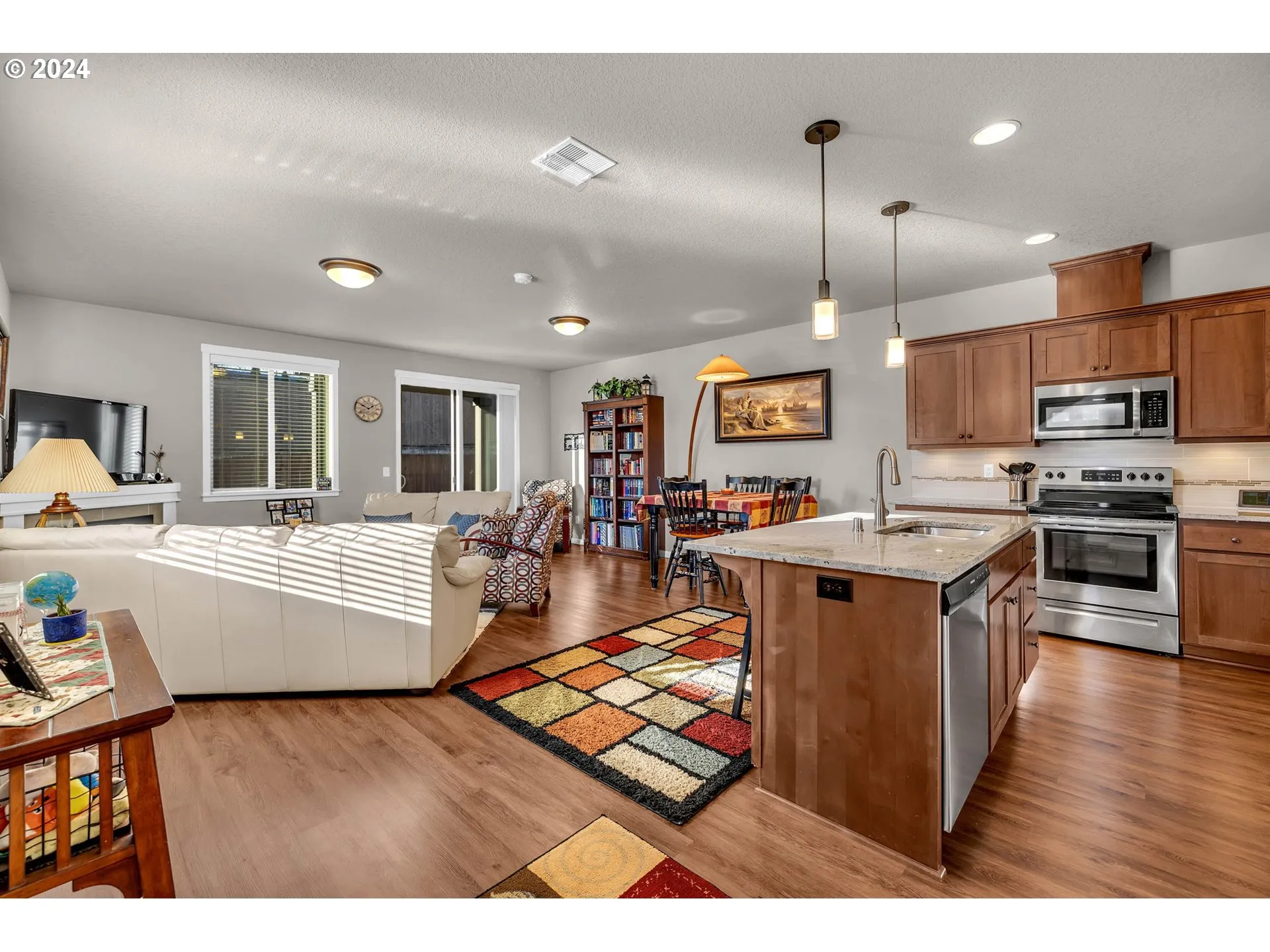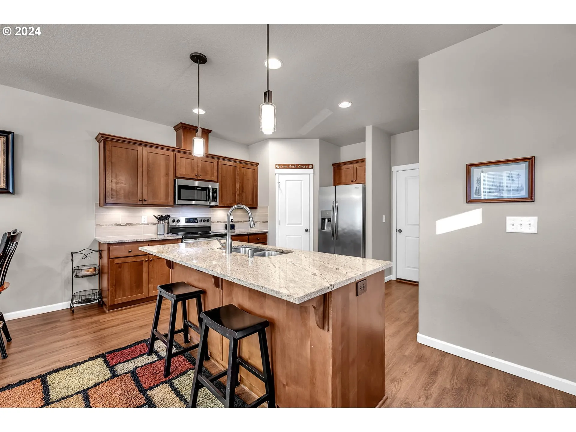 Beautiful Two Story Home! This 1708 Sqft 3 Bedroom 2.5 Bath Home Features Open-great Room Concept, 9ft Ceiling On Main Level, Lvp Flooring, Electric Fireplace, Granite Countertops, Stainless Steel Appliances, Kitchen Island, Walk-in Pantry, Undercounter Lighting, Tile Backsplash, Upstairs Loft, Vaulted Primary Bedroom, Ceiling Fan, Walk -in Shower, Double Vanity Sink, Walk-in Closet, Laundry Room With Built-in Cabinet, Forced Air Heat Pump & A/c, Finished 2 Car Garage With High Ceilings For Storage, Covered Patio, Landscaped, Fenced Yard. This Is A Must See Home!