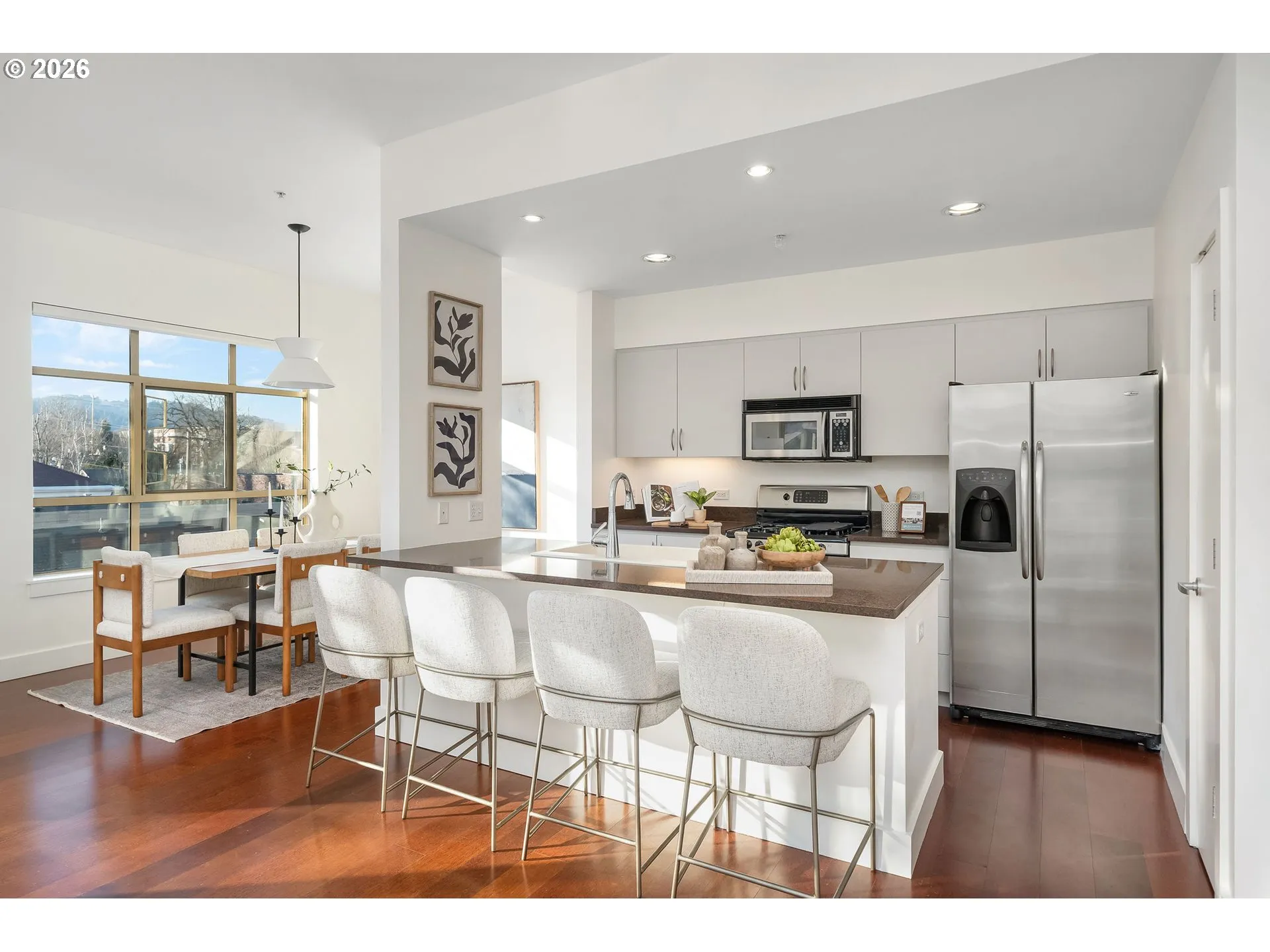 Set In The Heart Of Portland’s Vibrant Alphabet District, This Light-filled Corner Condo Features A Well-designed, Functional Floor Plan With A Focus On Comfort, Quality, And Effortless City Living. Located In Addison Condominiums—a Boutique Condo Building Nestled Along Tree-lined Streets With A Distinctive Blend Of Historic Architecture. Large Windows, High Ceilings, And Three Sliding Glass Doors Provide An Abundance Of Natural Light, Treetop Views, And Fresh Air. The Gas Fireplace And Built-ins Add Warmth And Character, While The Kitchen Offers Plenty Of Work Space With The Generous Peninsula With Bar Seating And A Pantry For Additional Storage. Step Outside To A Large Private Balcony—an Extension Of The Living Space—perfect For Morning Coffee, Al Fresco Dining, Or Simply Enjoying The Surrounding Greenery And Neighborhood Charm. Additional Features Include Wood Floors, A Spacious Walk-in Closet In The Primary Bedroom, A Stack-able Washer & Dryer, New Paint Throughout, New Carpet In Both Bedrooms, New Heat Pump Keeping The Temperature Just Right No Matter The Weather, A Deeded Storage Unit, And A Deeded Parking Space In The Gated Garage.